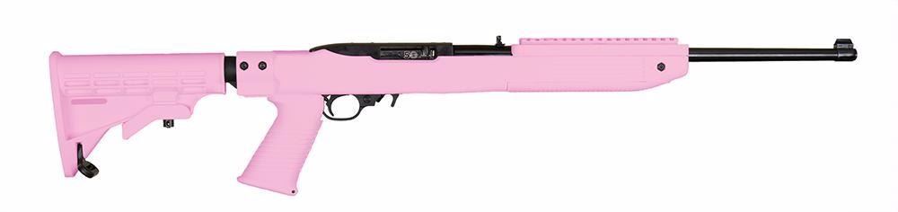 Mfr Items:Ruger Category:TACTICAL RIFLES Metal Finish:Black Action:Semi-Automatic Caliber:22 Long Rifle Barrel Length:16.6" Capacity:10+1 Safety:Crossbolt Stock Description:6-Position Tapco Pink Sights:Blade Front, Adjustable Rear Barrel Description:Hammer-Forged Hand:Right Stock Finish Group:Synthetic Metal Finish Group:Blued/Black