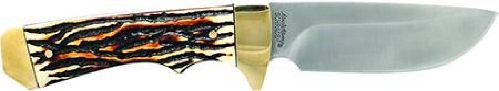 Specifications Type:Fixed Blade Type:Drop Point Blade Length:3.83" OAL:8.41" Blade Material:7Cr17 Stainless Steel Handle Description:Staglon Slabs Weight:.37 lbs Sheath:Leather Brown Edge Type:Plain (Straight) Frame:Stainless Steel No. of Blades:1