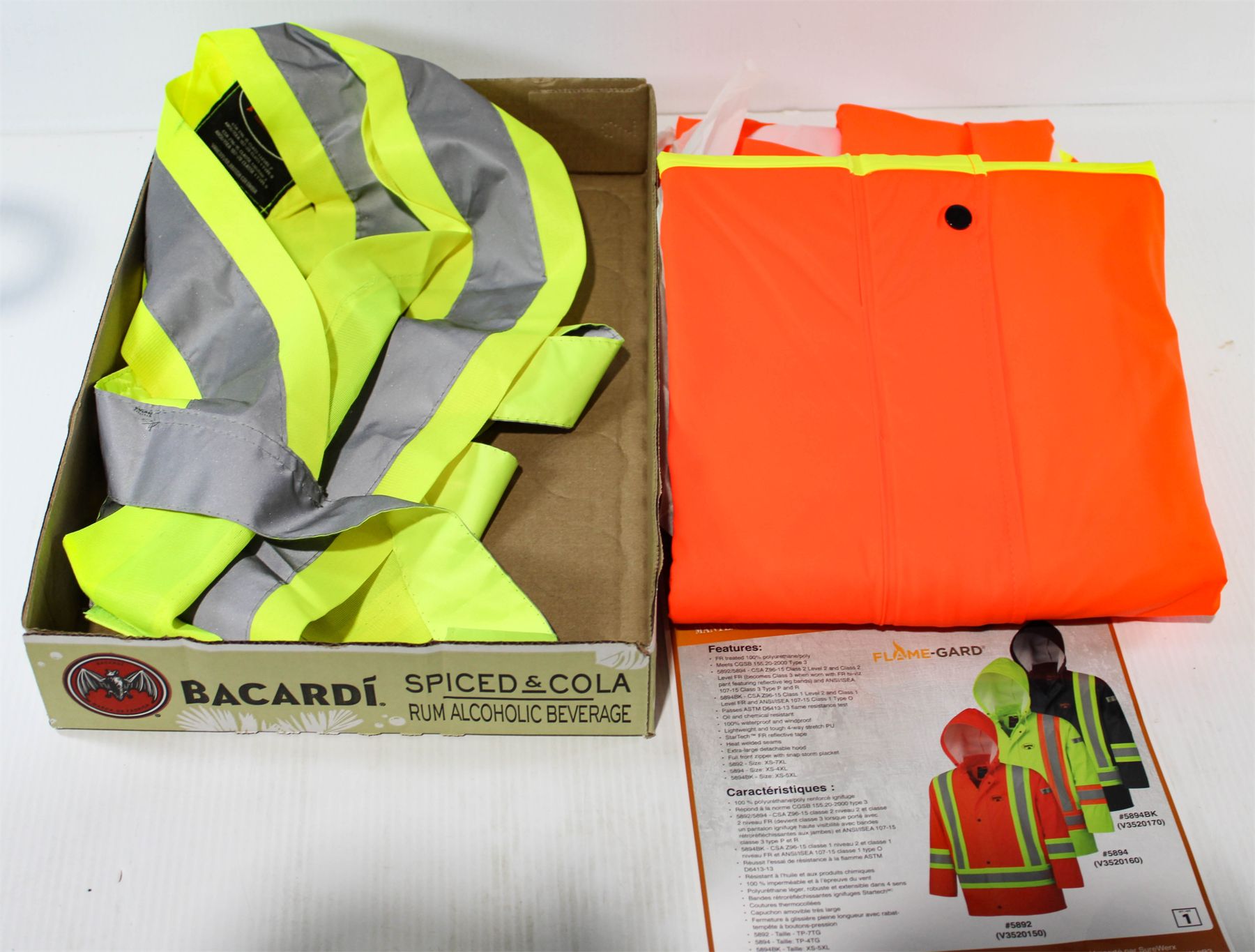 NEW SAFETY VEST, RAIN JACKET, 2XL + HI-VIS VEST, ETC.