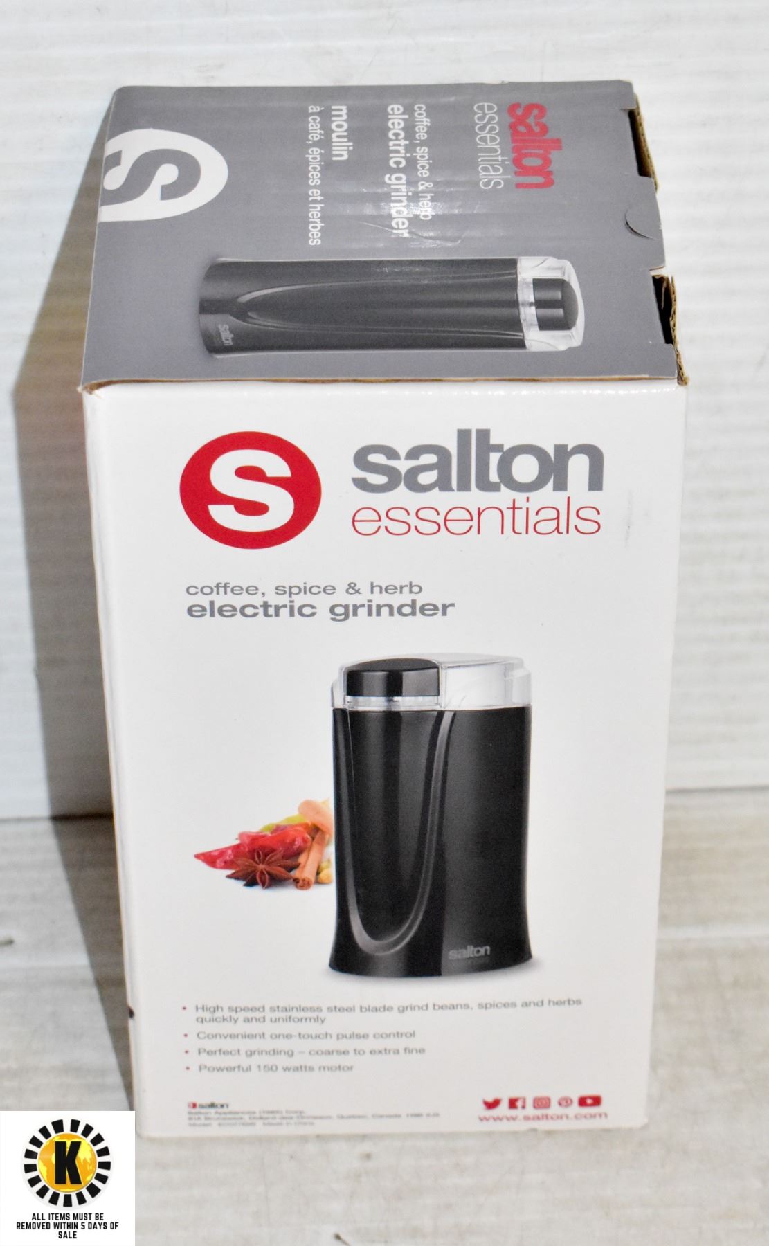NEW SALTON ESSENTIALS COFFEE SPICE HERB ELECTRIC