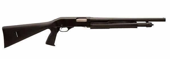 Manufacturer:Savage Arms|Stevens Model #:320 Security Pump Shotgun Type:Shotgun: Pump Action Finish:Matte Black Stock:Black Synthetic with Vertical Pistol Grip Sights:Bead Barrel Length:18.5" Overall Length:39" Weight:6.85 lbs Caliber:12 Gauge Capacity:5+1 Action:Pump Action Chokes:Cylinder Receiver:Matte Black Chamber:3" Features:Rotary Bolt Design, Dual Slide Bars, Side Ejection