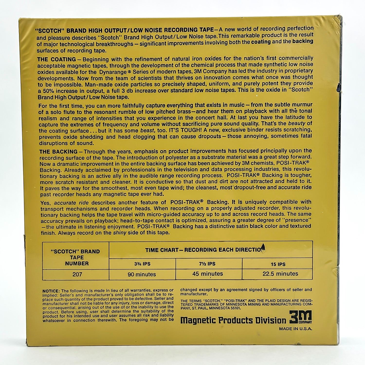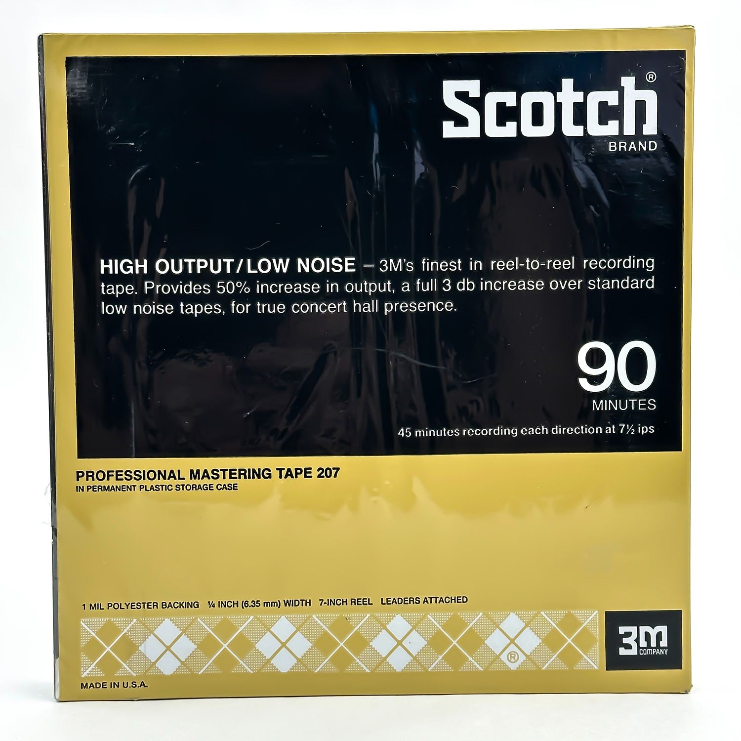 #8271 - NEW AND SEALED. PROFESSIONAL MASTERING TAPE 207 SCOTCH BRAND BLANK REEL TAPE (3M COMPANY) HIGH OUTPUT / LOW NOISE 90 MINUTES. CATALOG NO. 207-1/4-R90. TAPE IS 1/4 INCH WIDTH - ON A 7 INCH REEL - COMES IN A PERMANENT PLASTIC STORAGE CASE.