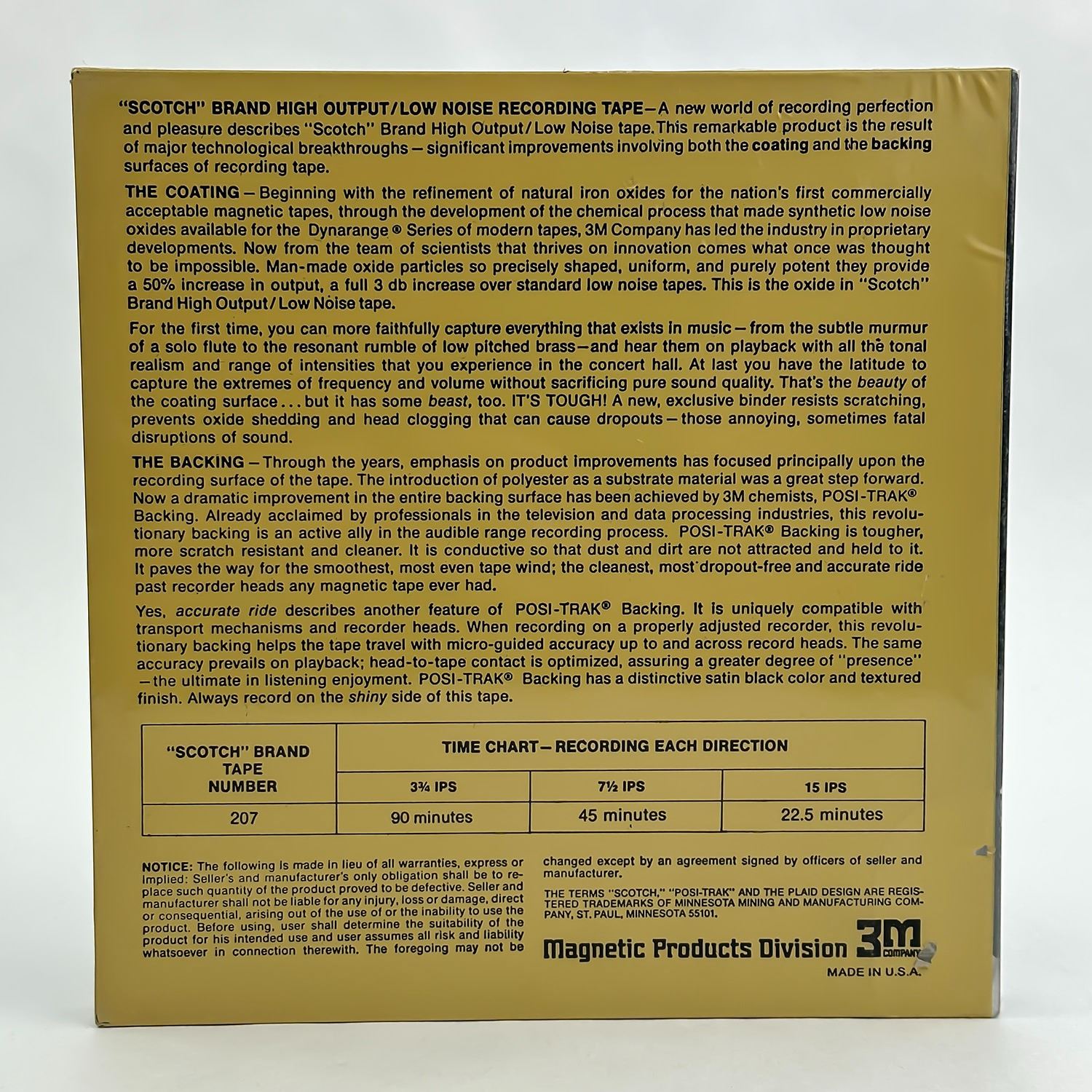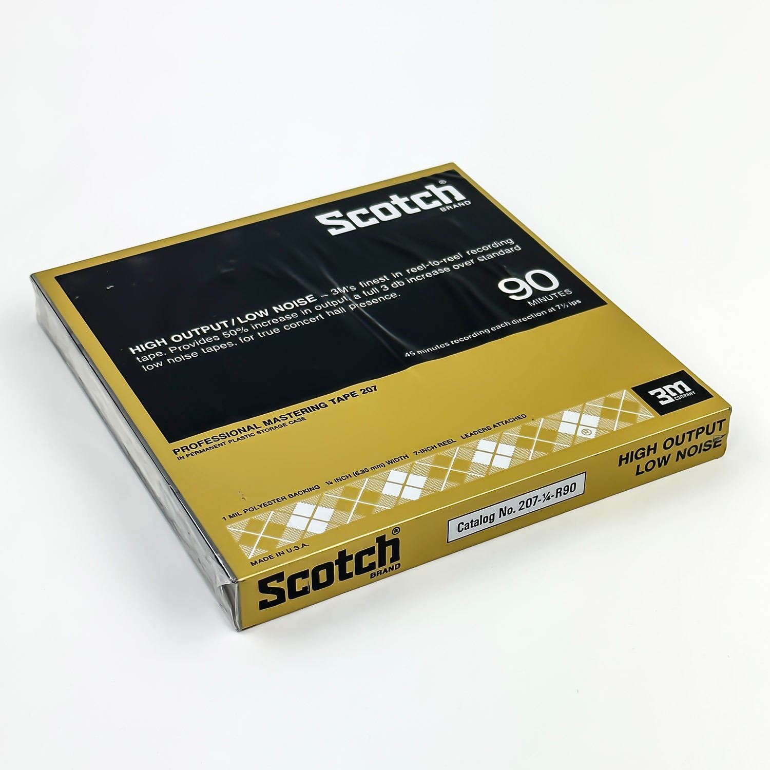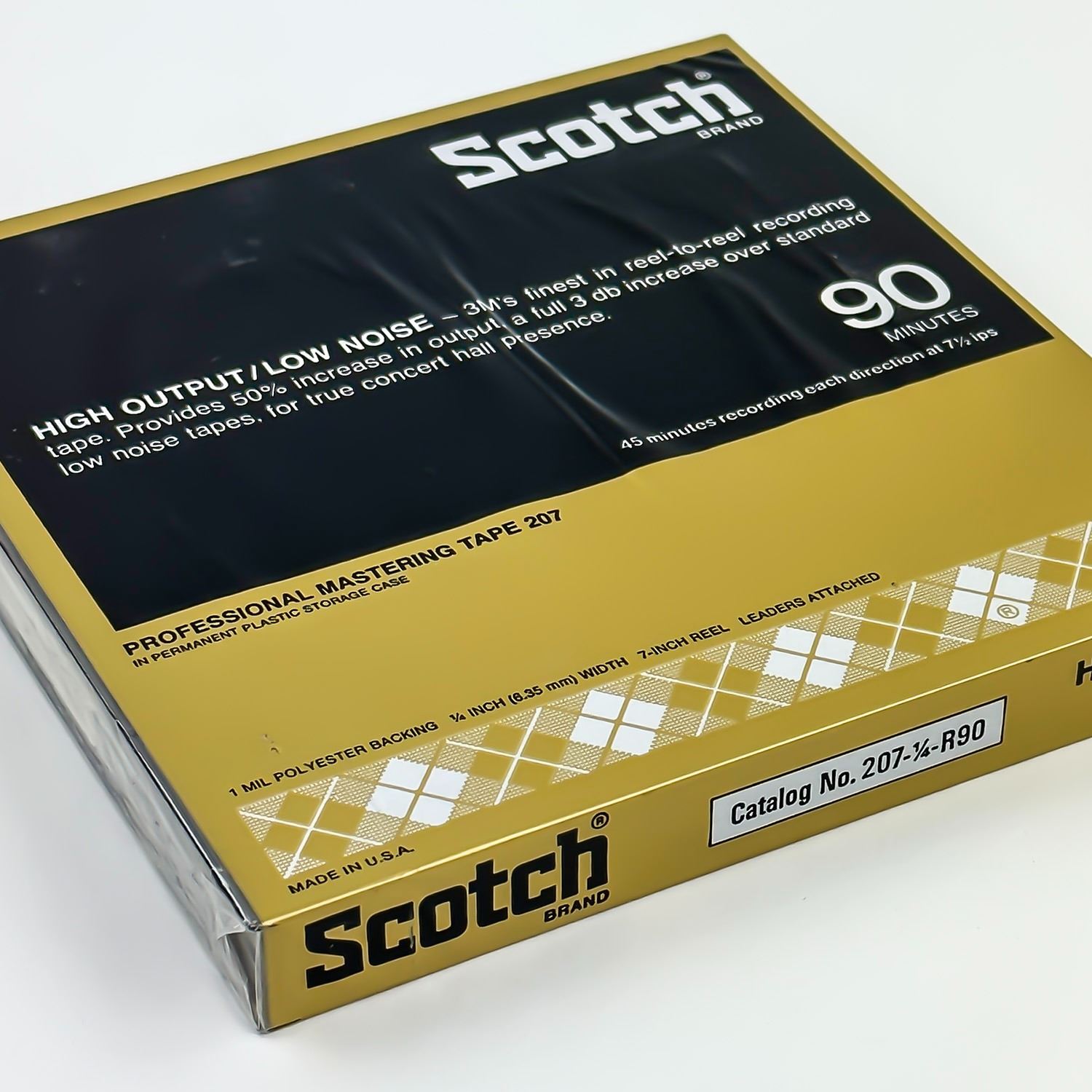 #8375 - NEW AND SEALED. PROFESSIONAL MASTERING TAPE 207 SCOTCH BRAND BLANK REEL TAPE (3M COMPANY) HIGH OUTPUT / LOW NOISE 90 MINUTES. CATALOG NO. 207-1/4-R90. TAPE IS 1/4 INCH WIDTH - ON A 7 INCH REEL - COMES IN A PERMANENT PLASTIC STORAGE CASE.