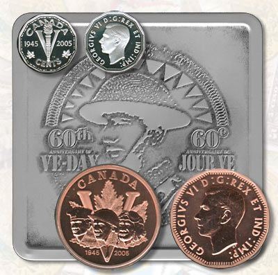 2x Coins oversized large 5 cent coin & Silver 5 cent coin Royal Canadian Mint with Display Metal Box, Certificate of Authenticity, informational historical WWII booklet & Sleeve