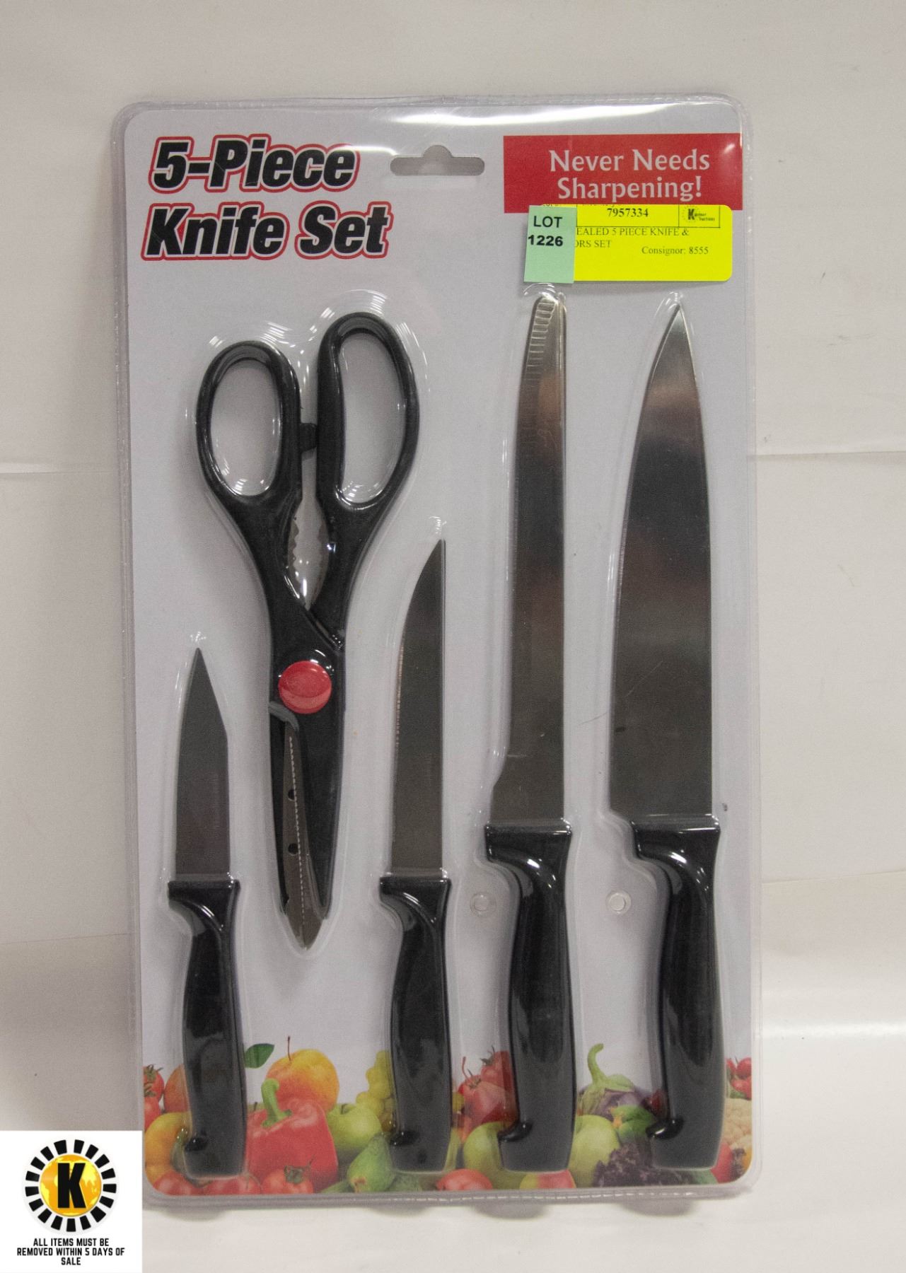 NEVER NEEDS SHARPENING **ALL ITEMS MUST BE REMOVED BY 5PM SATURDAY, APRIL 22ND, 2023. ALL REMAINING ITEMS WILL BE SUBJECT TO A $6.00 PER DAY STORAGE CHARGE. ANY ITEMS REMAINING AFTER MONDAY, MAY 8TH, 2023 WILL BE CONSIDERED FORFEITED. NO REFUNDS WILL BE ISSUED FOR FORFEITED ITEMS.** TO SCHEDULE A PICK UP APPOINTMENT CLICK HERE