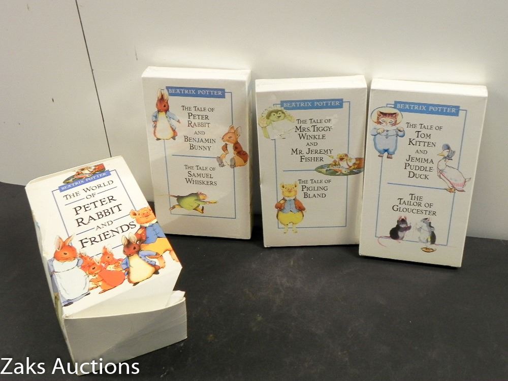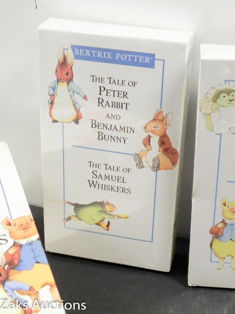 NEW SEALED BEATRIX POTTER VHS TAPE SET. THE WORLD OF PETER RABBIT AND FRIENDS. OUTER BOX SLIGHTLY DAMAGED, INNER VHS TAPES ALL SEALED WITH CELLOPHANE STILL