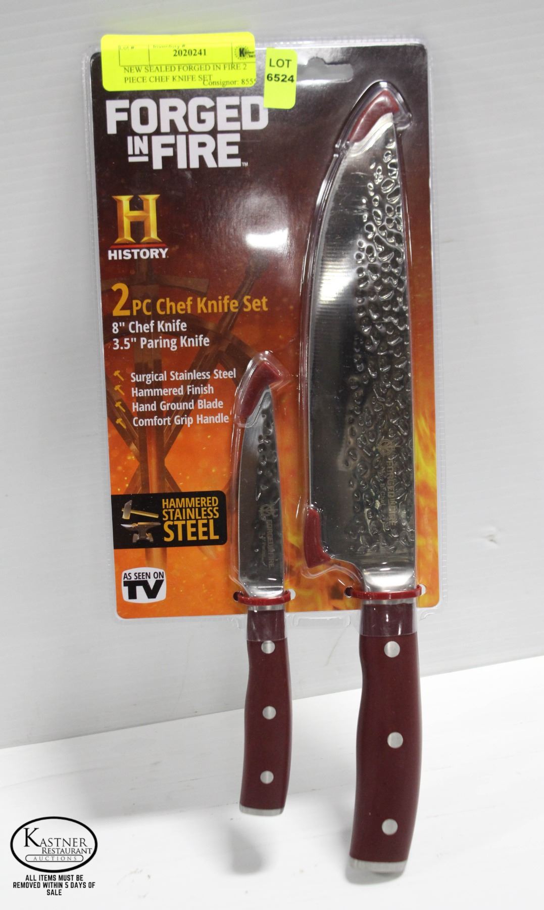 8" CHEF KNIFE AND 3.5" PARING KNIFE, HAMMERED STAINLESS STEEL, AS SEEN ON TV **ALL ITEMS MUST BE REMOVED BY 5PM MONDAY, SEPTEMBER 12TH, 2022. ALL REMAINING ITEMS WILL BE SUBJECT TO A $6.00 PER DAY STORAGE CHARGE. ANY ITEMS REMAINING AFTER MONDAY, SEPTEMBER 26TH, 2022 WILL BE CONSIDERED FORFEITED. NO REFUNDS WILL BE ISSUED FOR FORFEITED ITEMS.** TO SCHEDULE A PICK UP APPOINTMENT CLICK HERE