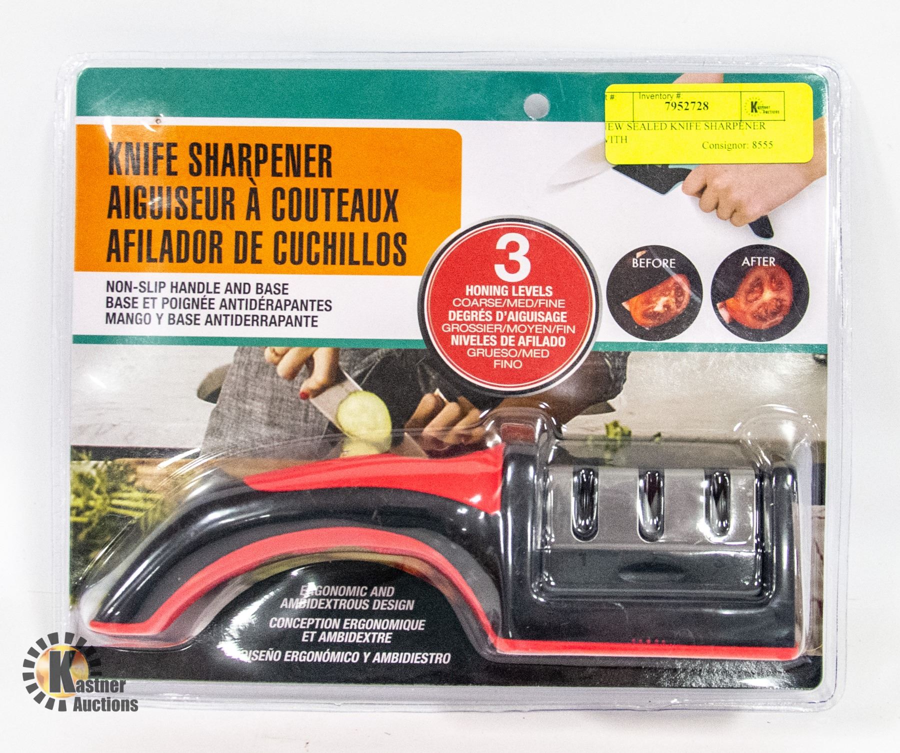 NON-SLIP HANDLE & BASE WITH 3 HONING LEVELS, ERGONOMIC & AMBIDEXTROUS DESIGN **ALL ITEMS MUST BE REMOVED BY 5PM SATURDAY, APRIL 15TH 2023. ALL REMAINING ITEMS WILL BE SUBJECT TO A $6.00 PER DAY STORAGE CHARGE. ANY ITEMS REMAINING AFTER MONDAY, APRIL 30TH, 2023 WILL BE CONSIDERED FORFEITED. NO REFUNDS WILL BE ISSUED FOR FORFEITED ITEMS. TO SCHEDULE A PICK UP APPOINTMENT CLICK HERE