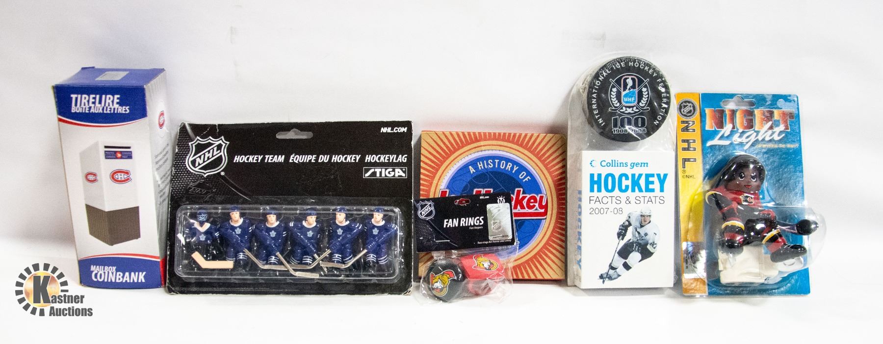 INTERNATIONAL HOCKEY FEDERATION HOCKEY FACTS & STATS 2007-08 WITH PUCK, CANADA POST MAILBOX COINBANK CALAGARY FLAME, STIGA TORONTO MAPLES TABLE TOP GAME, FAN RINGS, NIGHT LIGHT, A HISTORY OF ICE HOCKEY CD **ALL ITEMS MUST BE REMOVED BY 5PM SATURDAY, DECEMBER 14th 2024. ALL REMAINING ITEMS WILL BE SUBJECT TO A $6.00 PER DAY STORAGE CHARGE. ANY ITEMS REMAINING AFTER MONDAY, DECEMBER 30TH 2024 WILL BE CONSIDERED FORFEITED. NO REFUNDS WILL BE ISSUED FOR FORFEITED ITEMS. TO SCHEDULE A PICK UP APPOINTMENT CLICK HERE