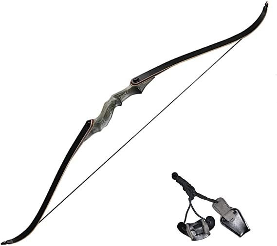 RECURVE BOW, RIGHT HANDED, 30-50LB WITH STRINGER AND LEATHER GUARDS, AMZ SES