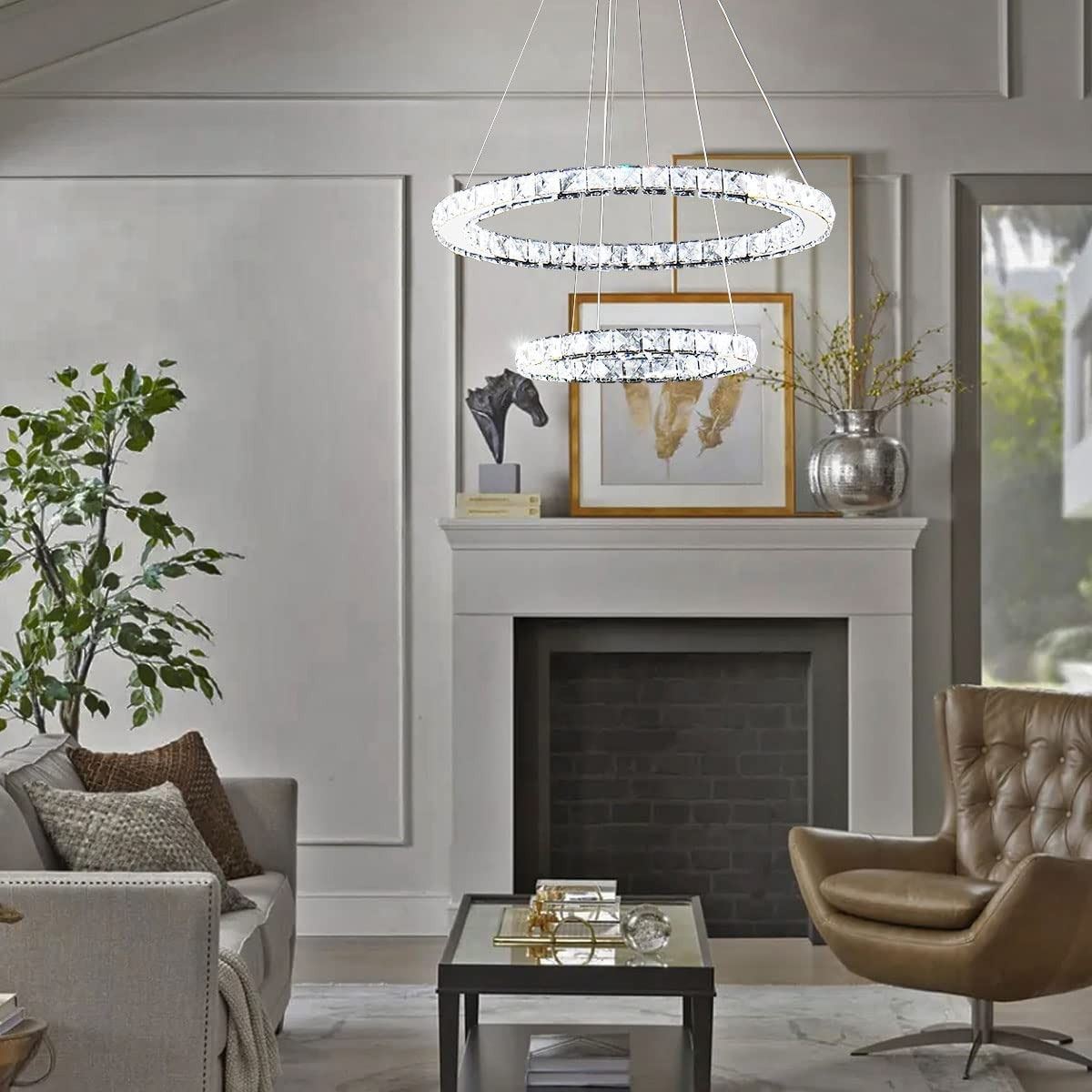 CHANDELIER, 2 RING ADJUSTABLE DROP DOWN, WHITE, PARTS AND MANUAL CONFIRMED, AMZ SES