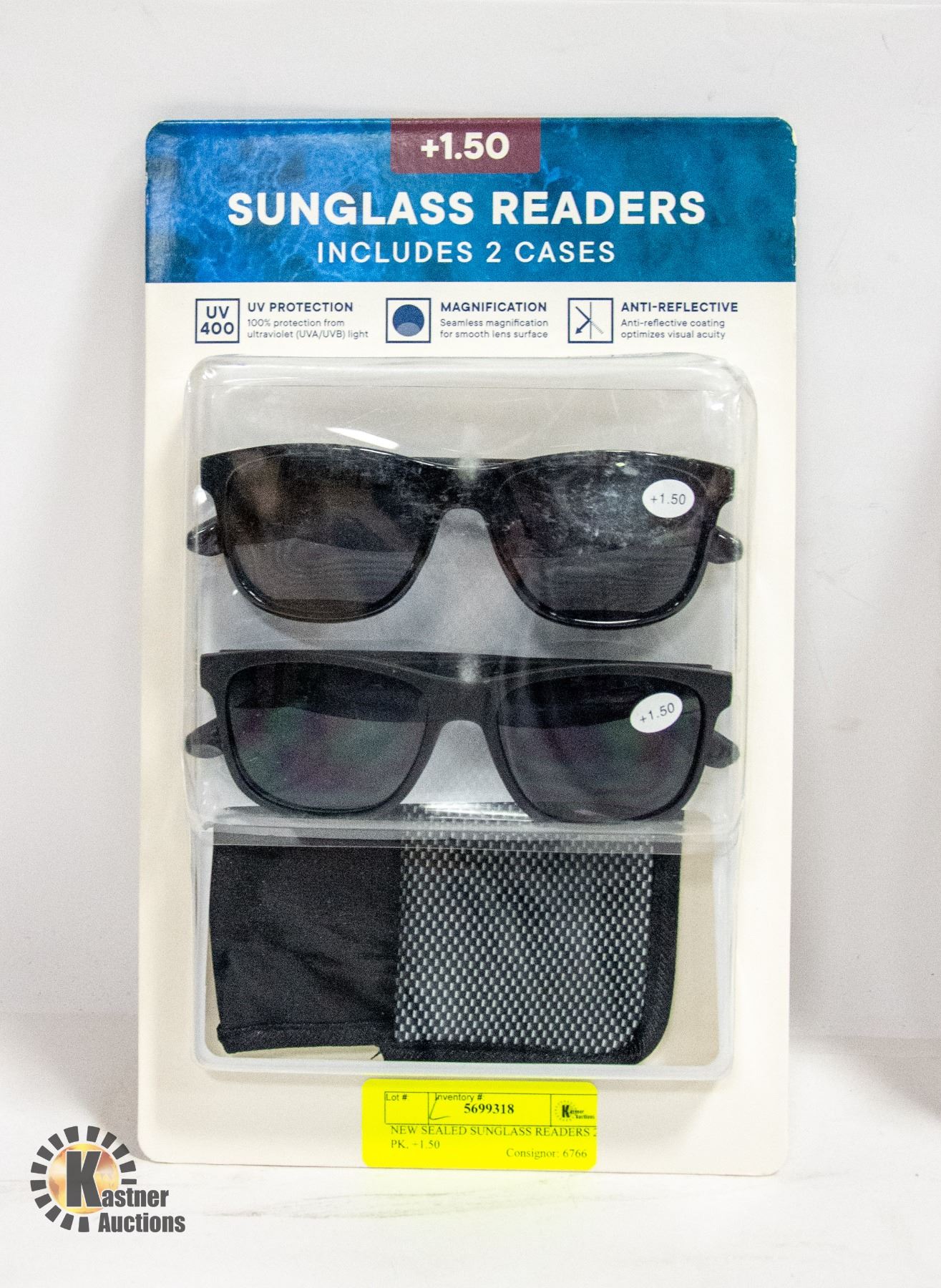 NEW SEALED SUNGLASS READERS 2 PK, +1.50