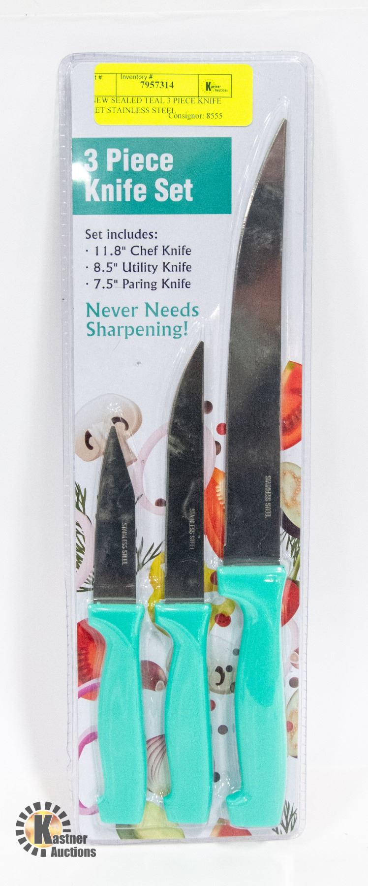11.8" CHEFS KNIFE, 8.5" UTILITY KNIFE, 7.5" PARING KNIFE **ALL ITEMS MUST BE REMOVED BY 5PM SATURDAY, MAY 20TH 2023. ALL REMAINING ITEMS WILL BE SUBJECT TO A $6.00 PER DAY STORAGE CHARGE. ANY ITEMS REMAINING AFTER MONDAY, JUNE 5TH, 2023 WILL BE CONSIDERED FORFEITED. NO REFUNDS WILL BE ISSUED FOR FORFEITED ITEMS. TO SCHEDULE A PICK UP APPOINTMENT CLICK HERE