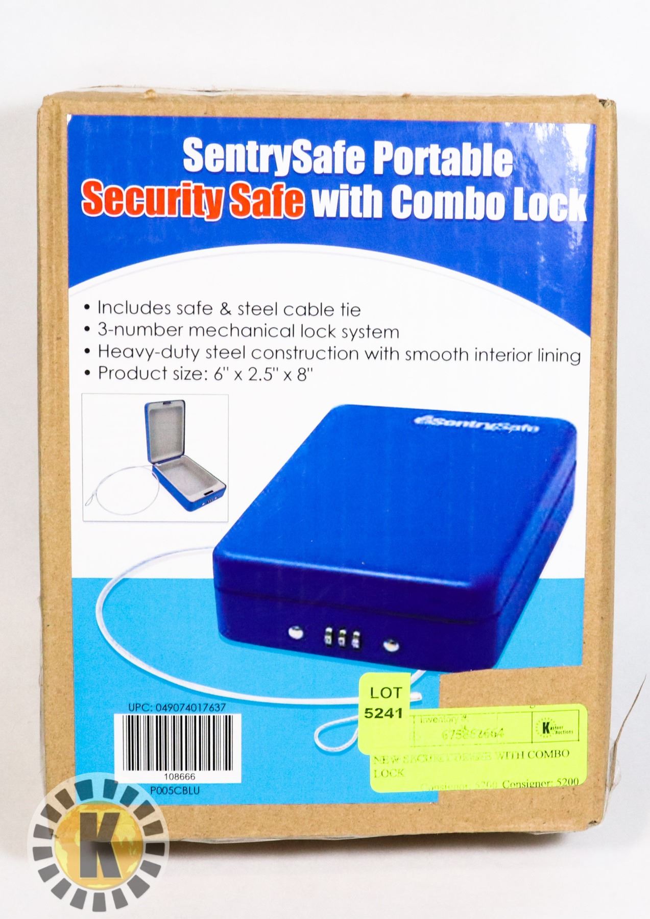 INCLUDES SAFE AND STEEL CABLE TIE, 3 NUMBER MECHANICAL LOCK SYSTEM, APPROX. 6" X 2.5" X 8"