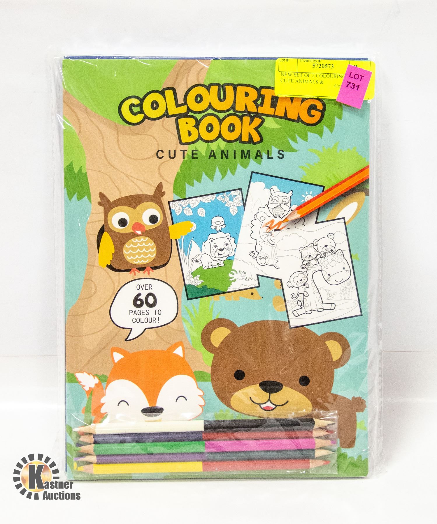 NEW SET OF 2 COLOURING BOOKS, CUTE ANIMALS &