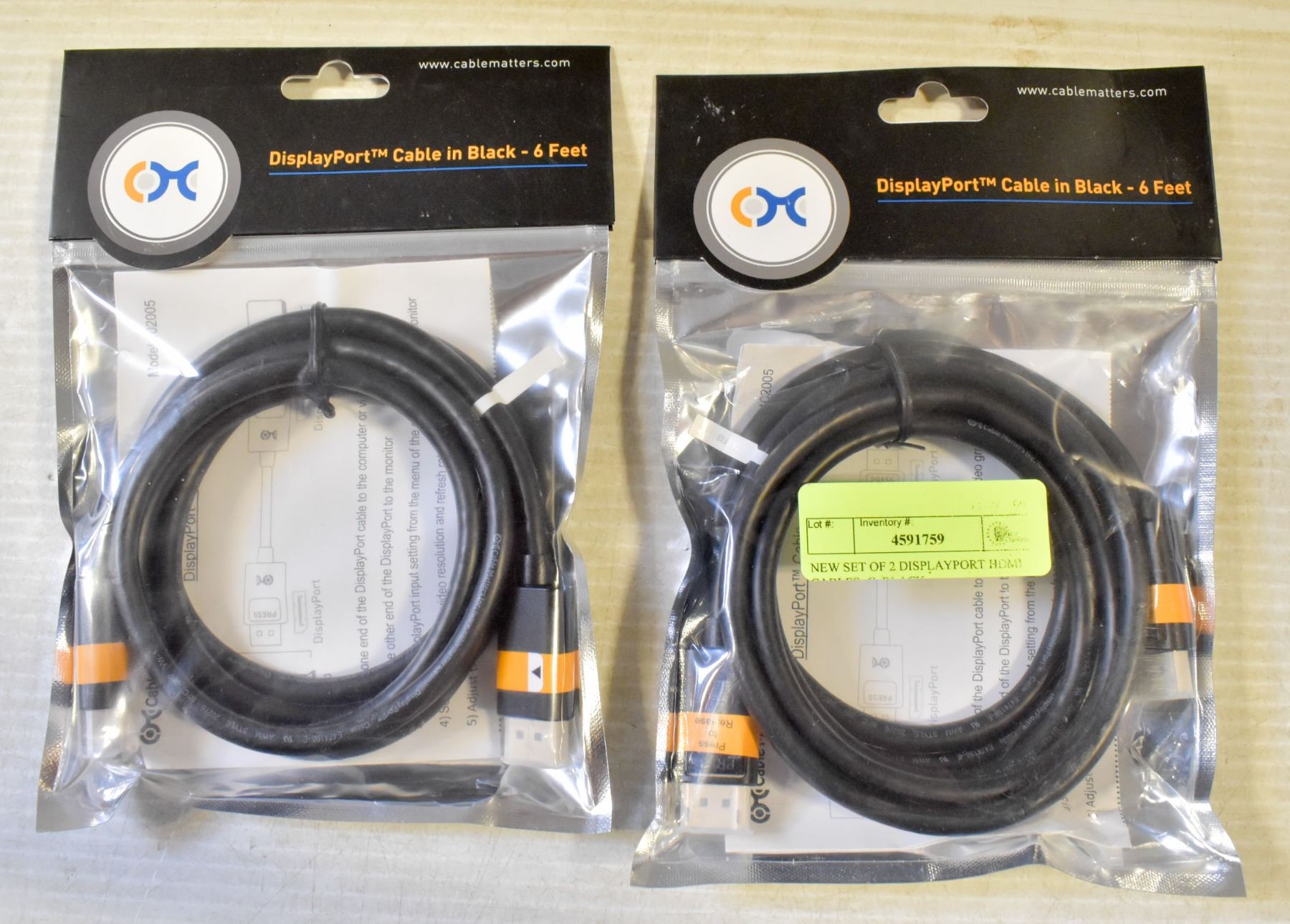 NEW SET OF 2 DISPLAYPORT HDMI CABLES, 6', BLACK