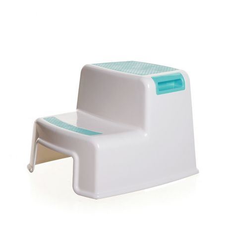 PLASTIC, WHITE AND AQUA COLOURS, NON SLIP PADS, GRIPPED STEPS, SIDE HANDLES, 2 STEPPING STOOLS