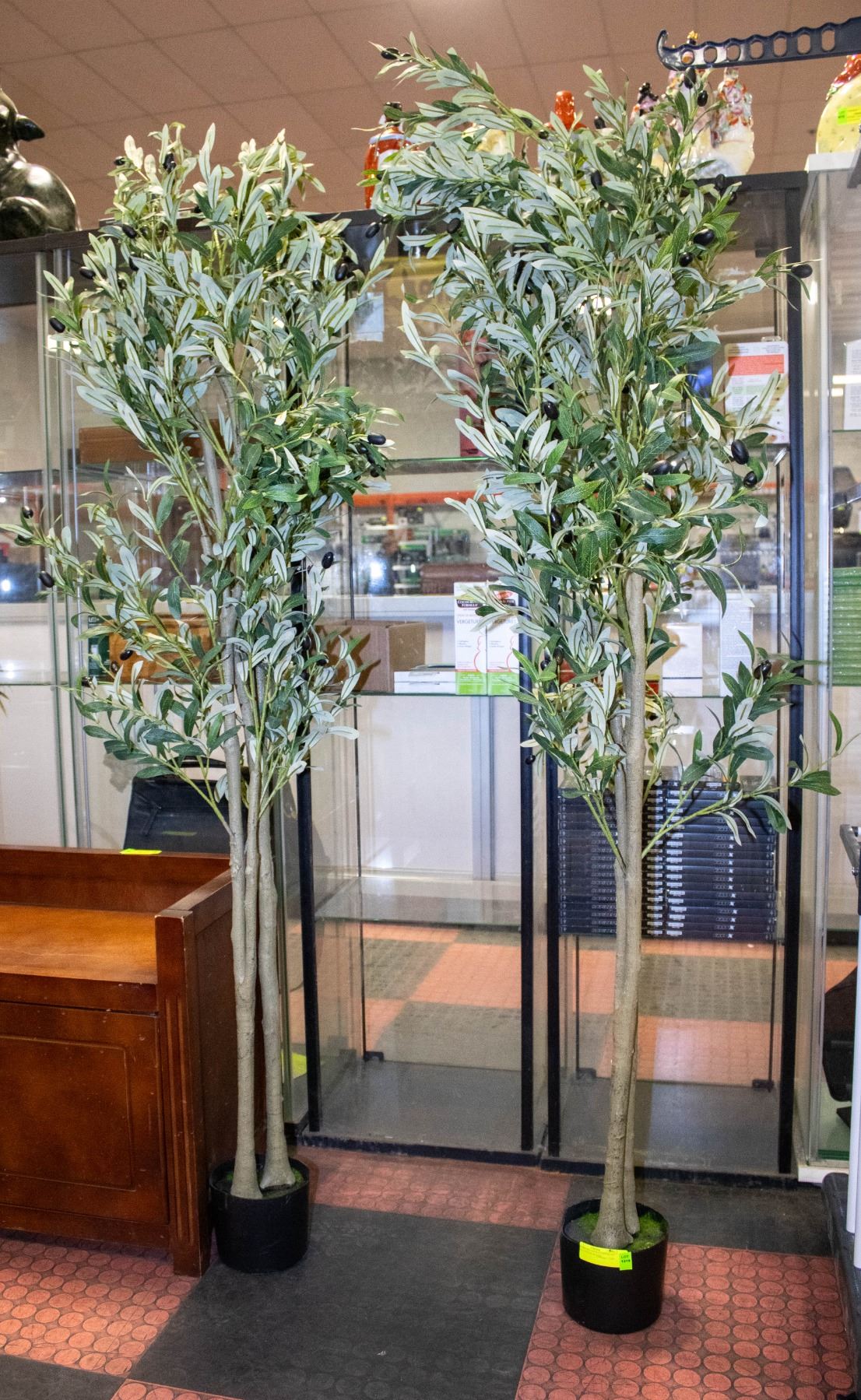 NEW SET OF 2 FAUX 6 FOOT OLIVE TREES WITH PLANTERS