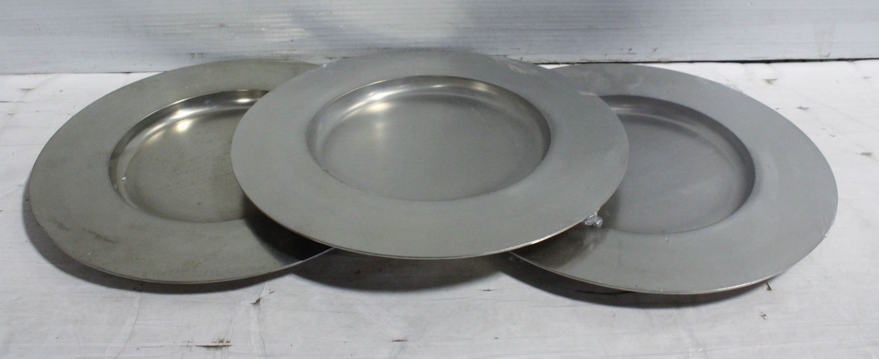 NEW SET OF 3 ROUND CHARGING PLATES PEWTER - 12.5"