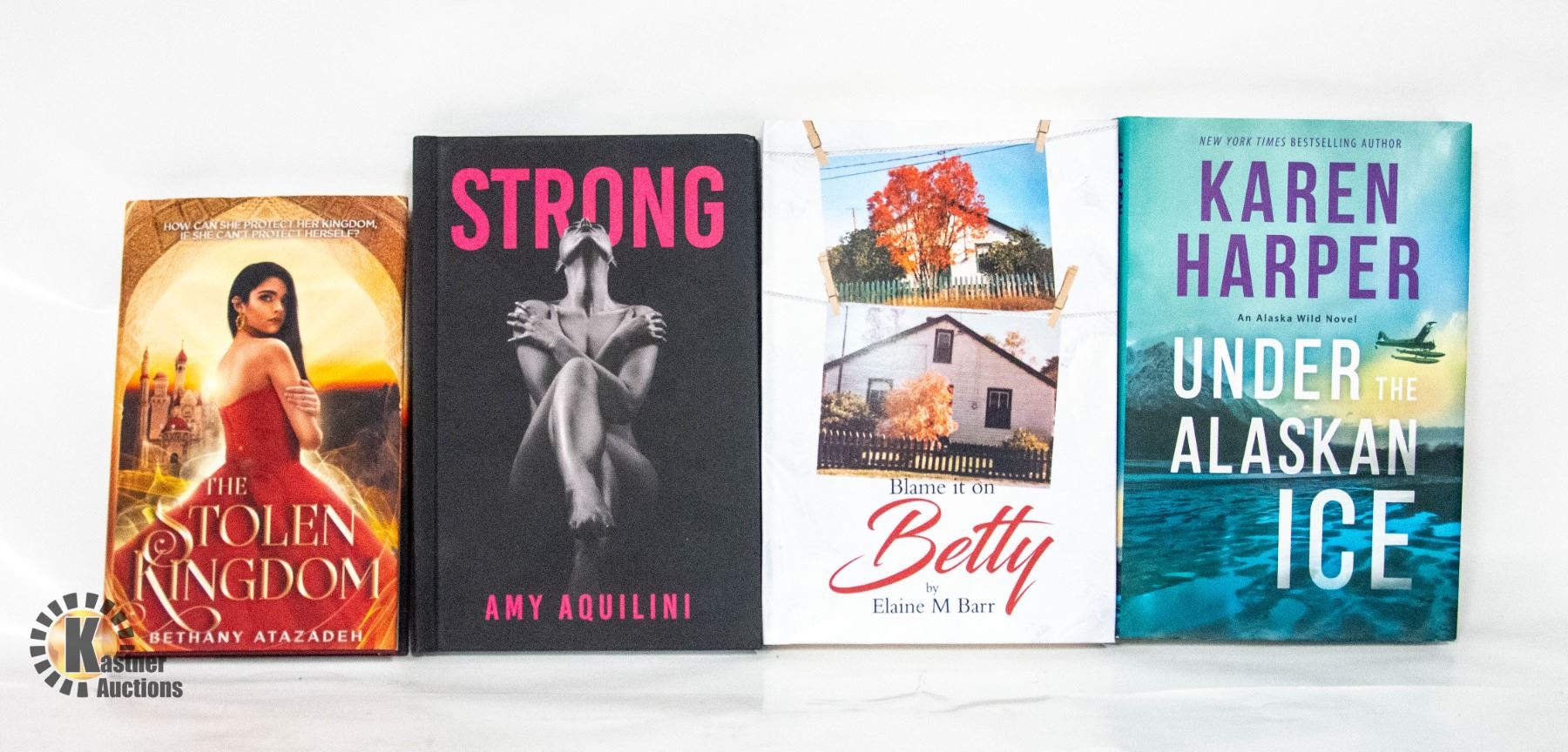STRONG BY AMY AQUILINI, THE STOLEN KINGDOM BY BETHANY ATAZADEH, UNDER THE ALASKAN ICE BY KAREN HARPER, BLAME IT ON BETTY BY ELAINE M BARR, AMZ SES **ALL ITEMS MUST BE REMOVED BY 5PM SATURDAY, AUGUST 12TH 2023. ALL REMAINING ITEMS WILL BE SUBJECT TO A $6.00 PER DAY STORAGE CHARGE. ANY ITEMS REMAINING AFTER MONDAY, AUGUST 28TH, 2023 WILL BE CONSIDERED FORFEITED. NO REFUNDS WILL BE ISSUED FOR FORFEITED ITEMS. TO SCHEDULE A PICK UP APPOINTMENT CLICK HERE