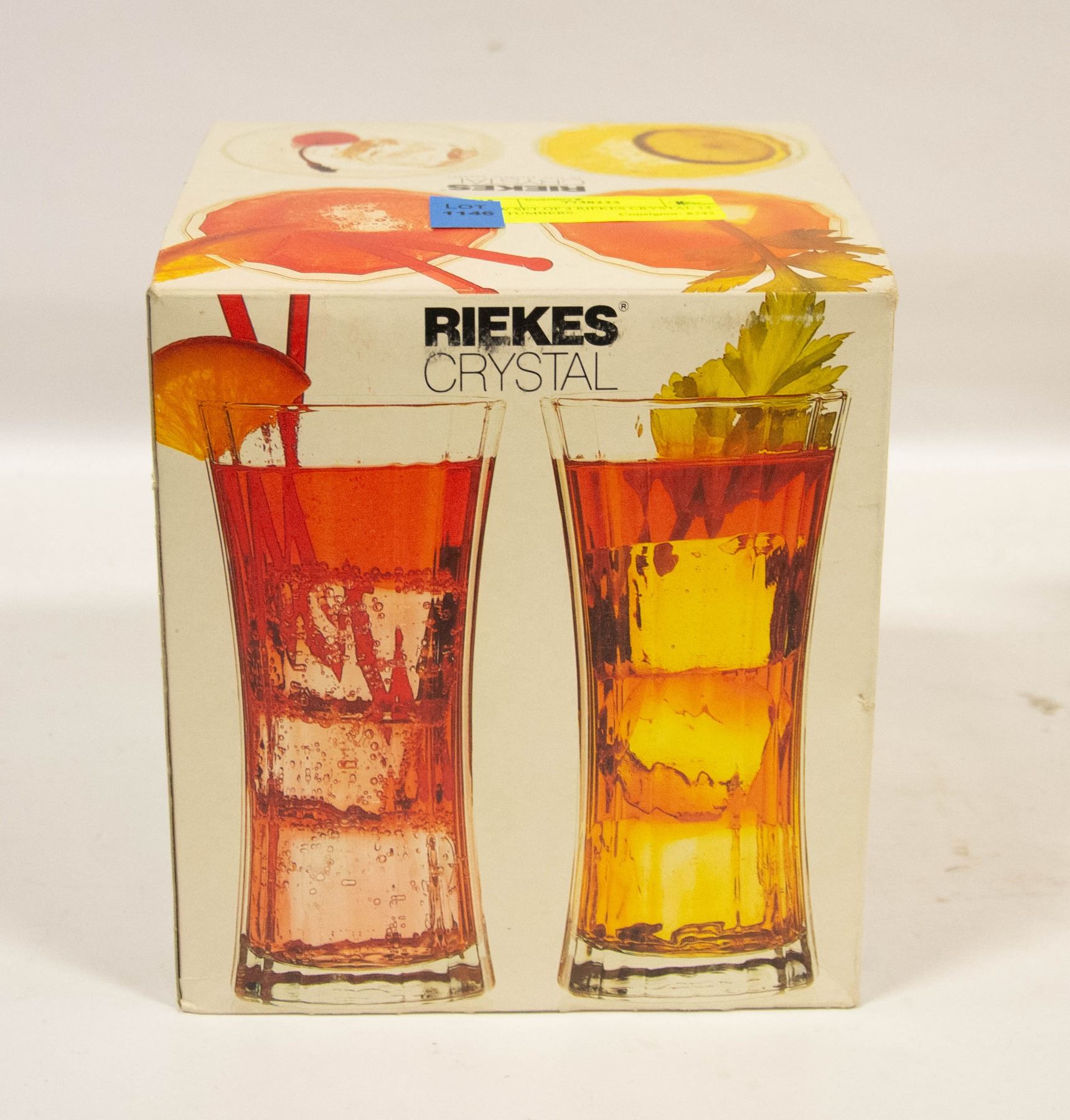 NEW SET OF 4 RIEKES CRYSTAL 14 OZ. TUMBERS.