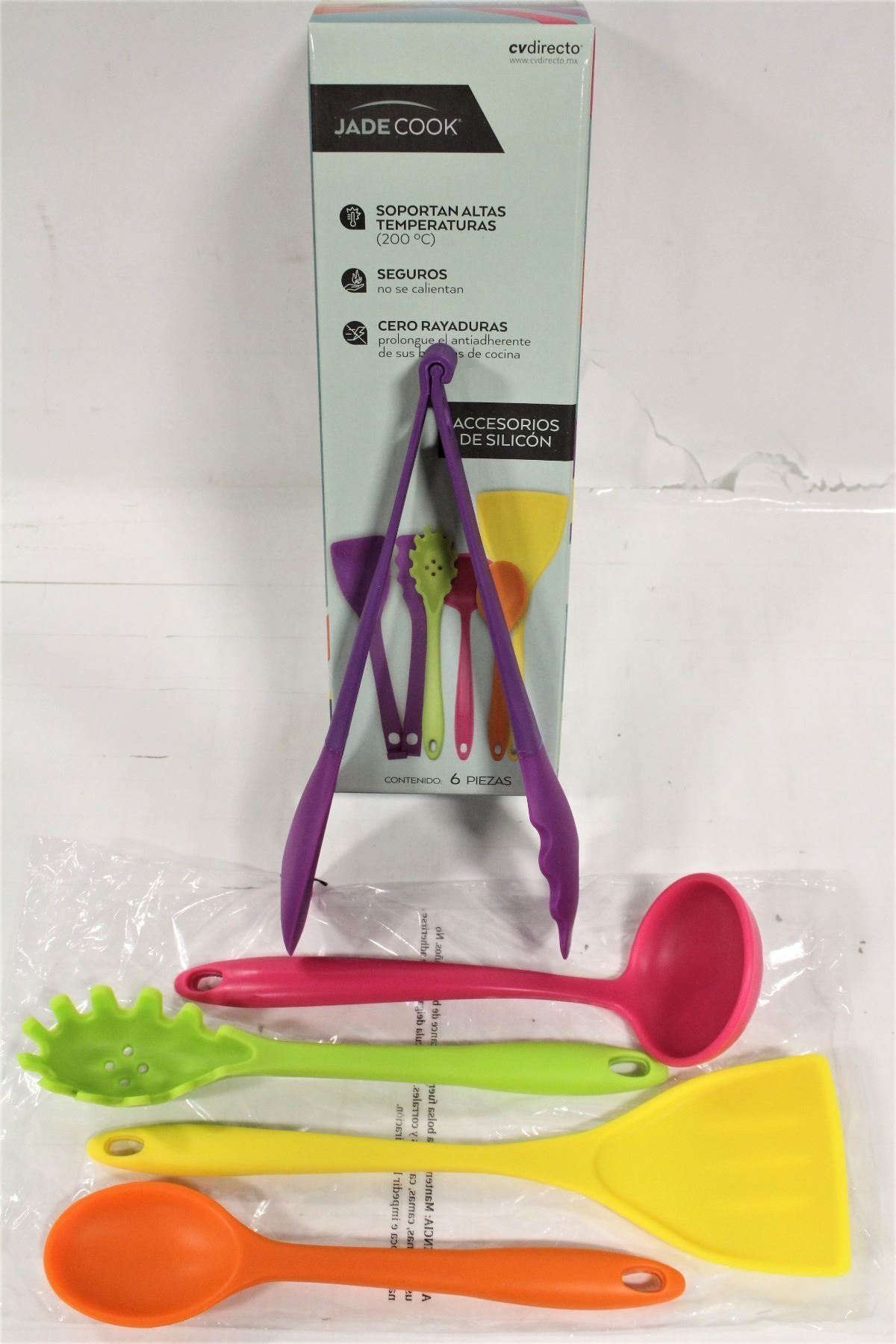 SUPPORTS UP TO 200 DEGREES CELSIUS. SCRATCH FREE. INCLUDES SPATULA, SPOON, LADEL, PASTA SPOON, & 3-IN-1 HYBRID TONGS(TONGS, SMALL SPATULA, SLOTTED SPOON)