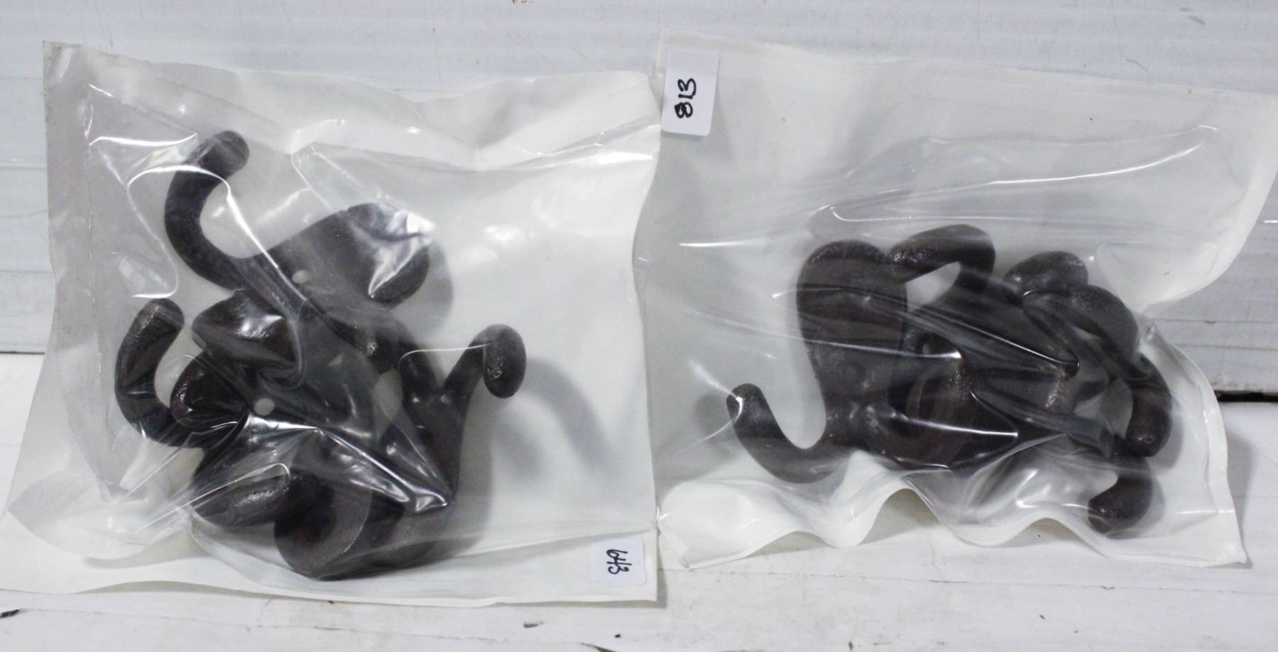 NEW SET OF 8 CAST IRON BROWN WALL HOOKS - 2" x 2"