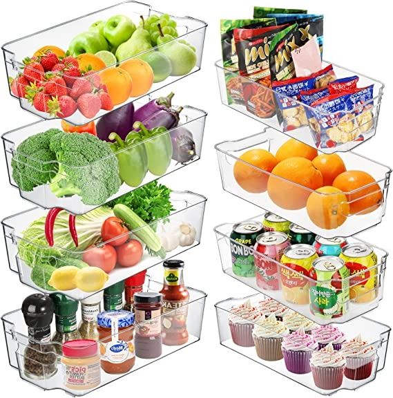 NEW SET OF 8 PANTRY ORGANIZER BINS, STACKABLE