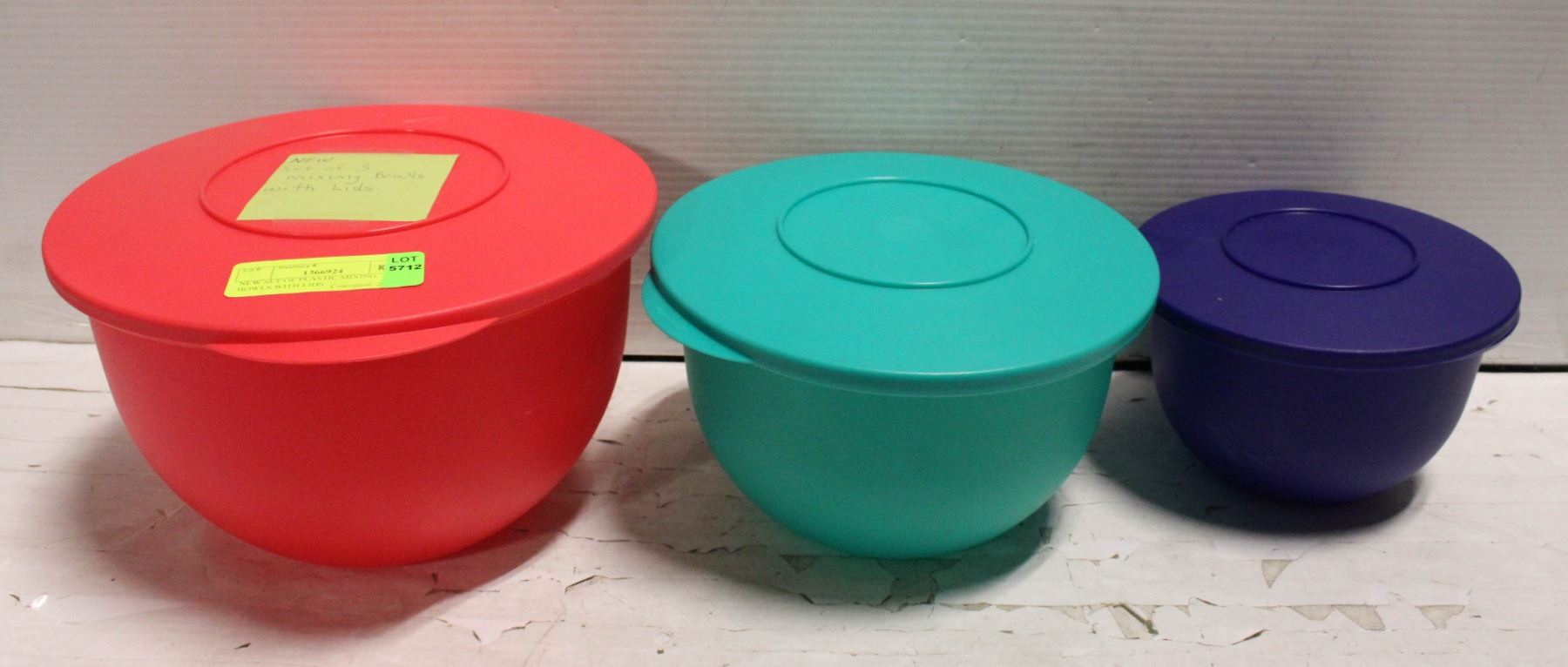 NEW SET OF PLASTIC MIXING BOWLS WITH LIDS