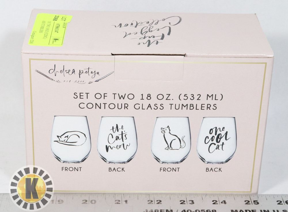NEW SET OF TWO 18OZ (532ML) "CAT" GLASS TUMBLERS