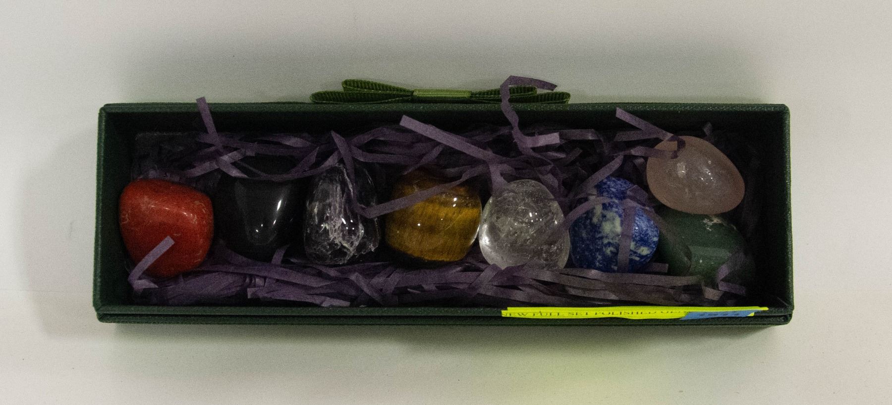 COMPLETE SET OF 8 CLEAR QUARTZ, ROSE QUARTS, BLACK OBSIDIAN, TIGERS-EYE, RED JASPER, LAPIS LAZULI, AMETHYST & GREEN AVENTURINE **ALL ITEMS MUST BE REMOVED BY 5PM SATURDAY, JULY 29TH 2023. ALL REMAINING ITEMS WILL BE SUBJECT TO A $6.00 PER DAY STORAGE CHARGE. ANY ITEMS REMAINING AFTER MONDAY, AUGUST 14TH, 2023 WILL BE CONSIDERED FORFEITED. NO REFUNDS WILL BE ISSUED FOR FORFEITED ITEMS. TO SCHEDULE A PICK UP APPOINTMENT CLICK HERE