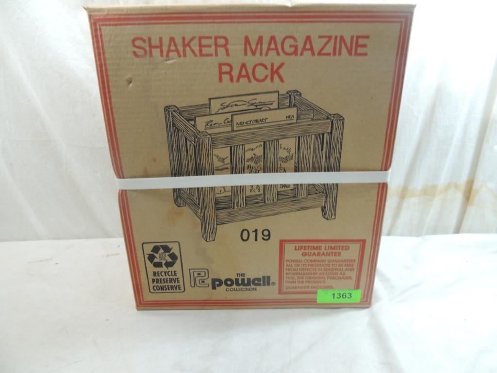NEW IN BOX NEW SHAKER MAGAZINE RACK, WOODEN MAGAZINE RACK AS SHOWN SEE PHOTO FOR MORE DETAILS.