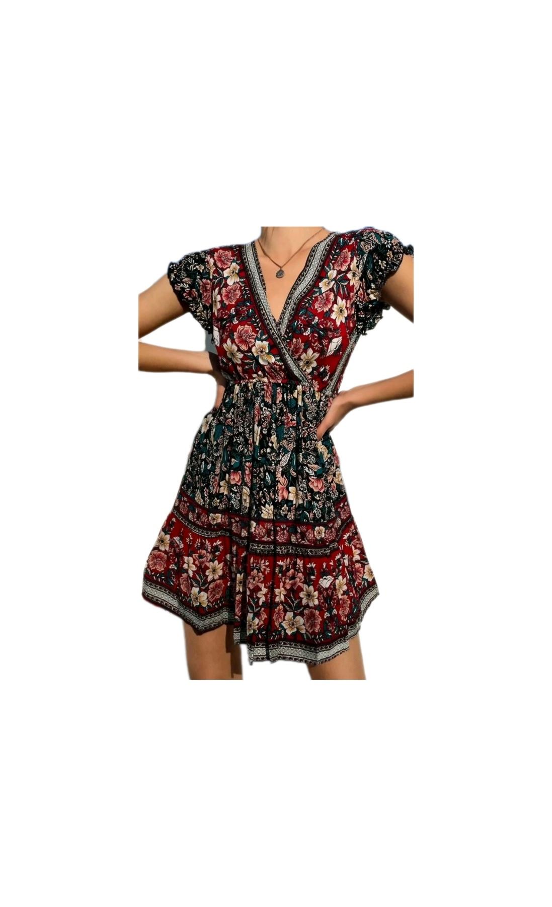 NEW SHEIN RED FLORAL FIESTA DRESS SMALL