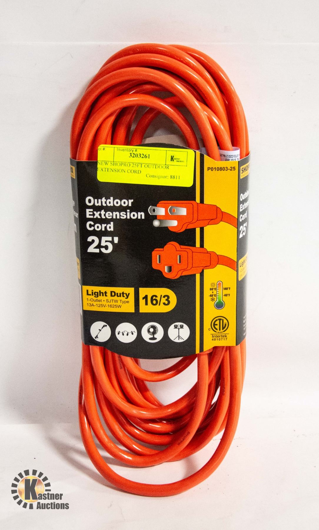NEW SHOPRO 25FT OUTDOOR EXTENSION CORD