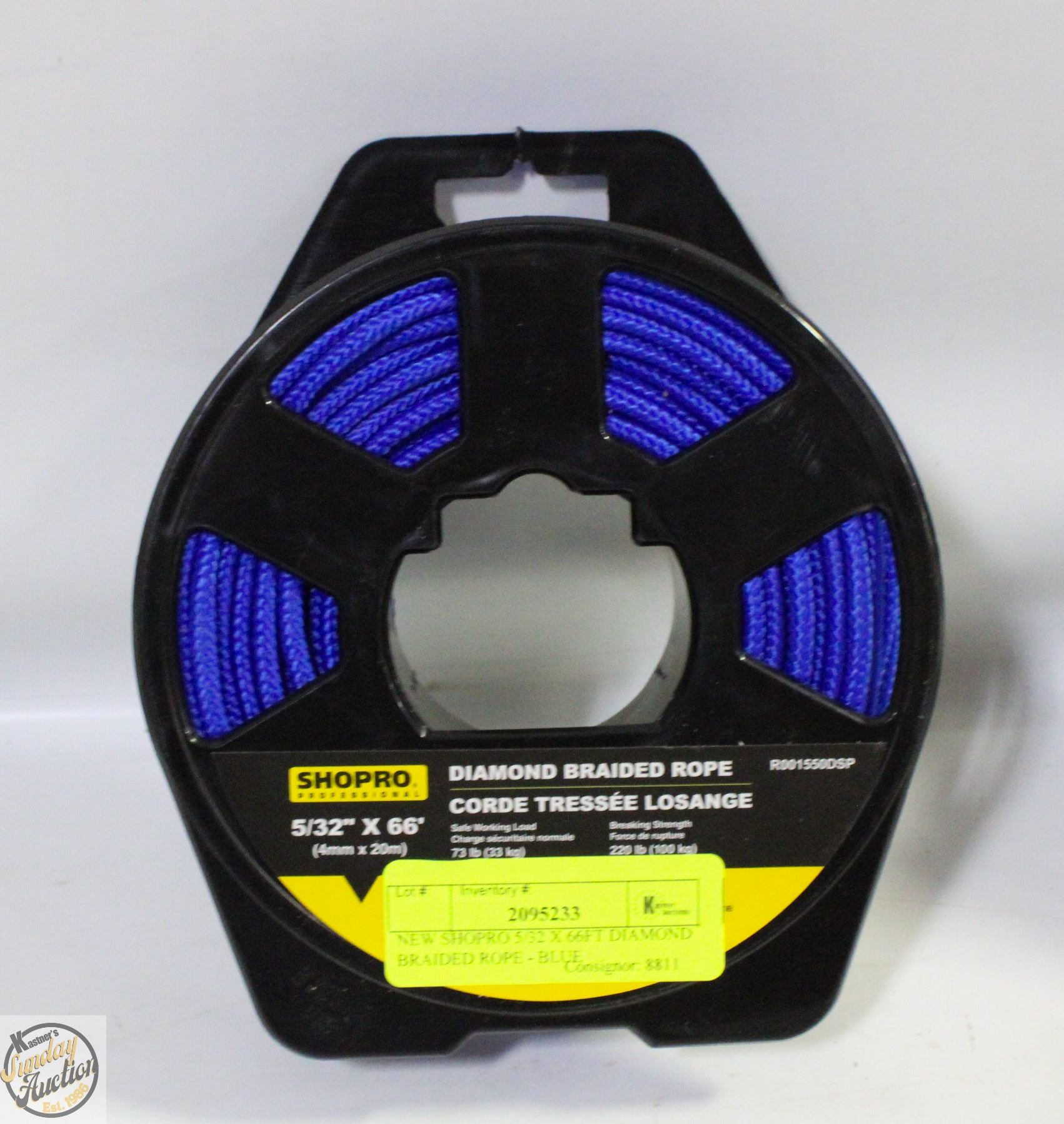 NEW SHOPRO 5/32 X 66FT DIAMOND BRAIDED ROPE - BLUE