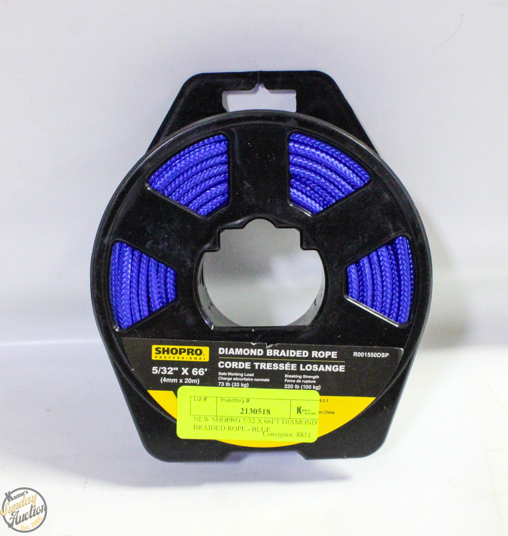 NEW SHOPRO 5/32 X 66FT DIAMOND BRAIDED ROPE - BLUE