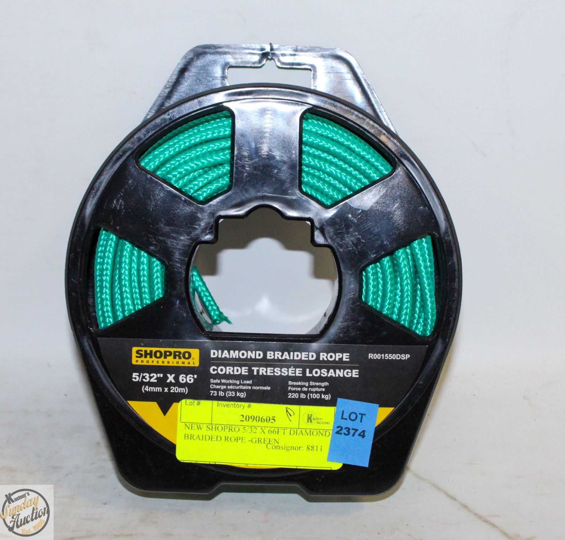 NEW SHOPRO 5/32 X 66FT DIAMOND BRAIDED ROPE -GREEN