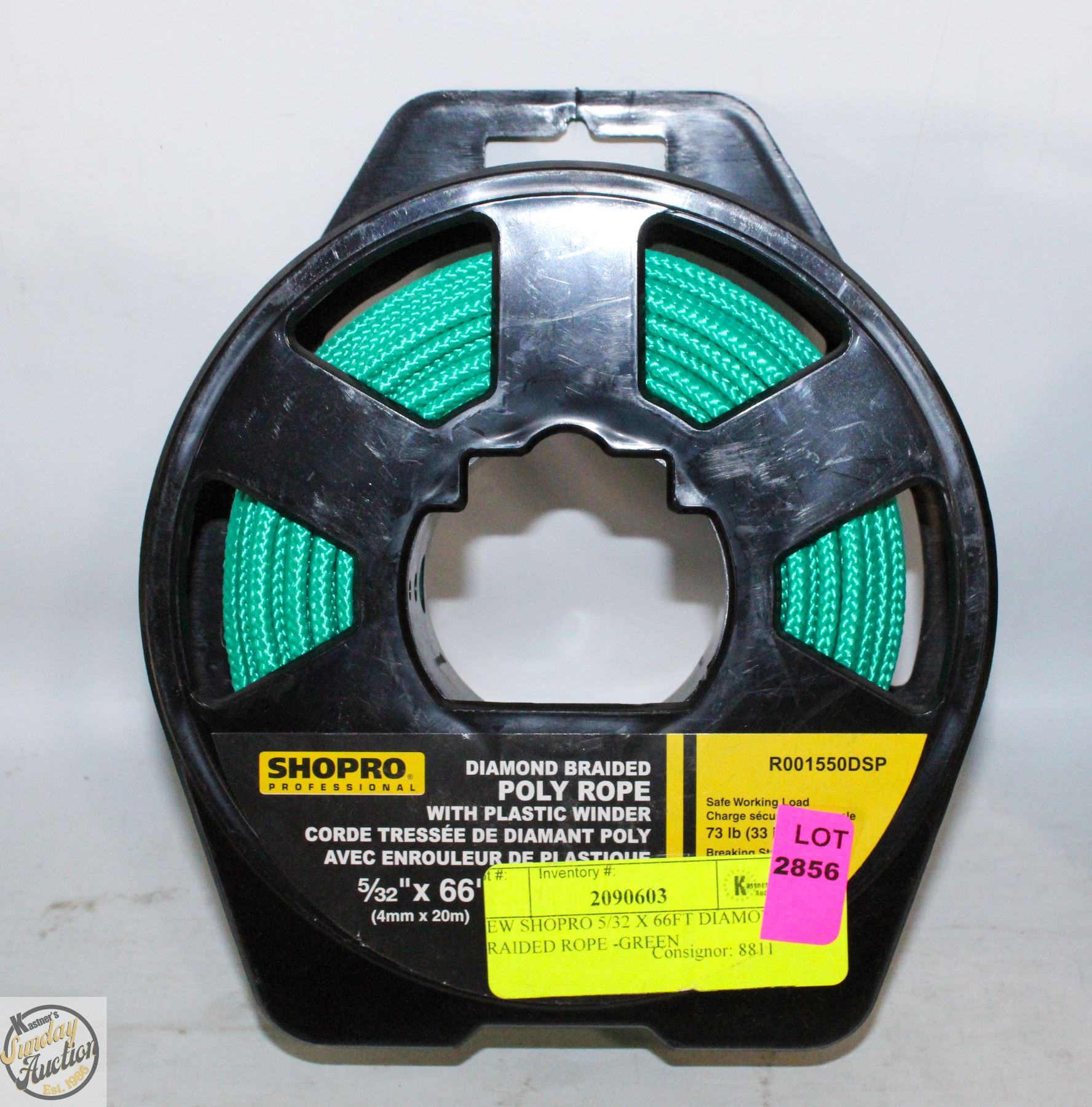 NEW SHOPRO 5/32 X 66FT DIAMOND BRAIDED ROPE -GREEN