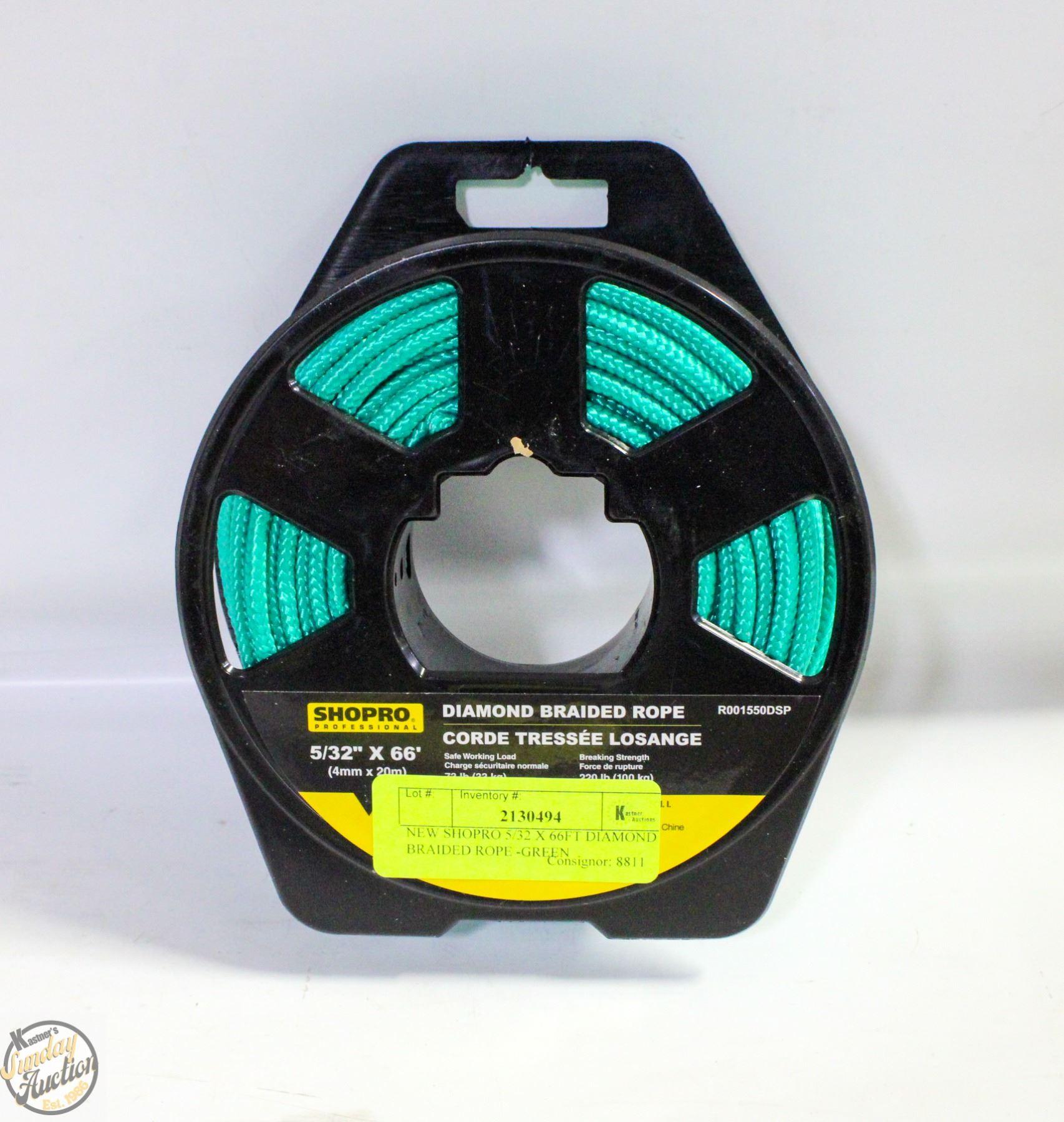 NEW SHOPRO 5/32 X 66FT DIAMOND BRAIDED ROPE -GREEN
