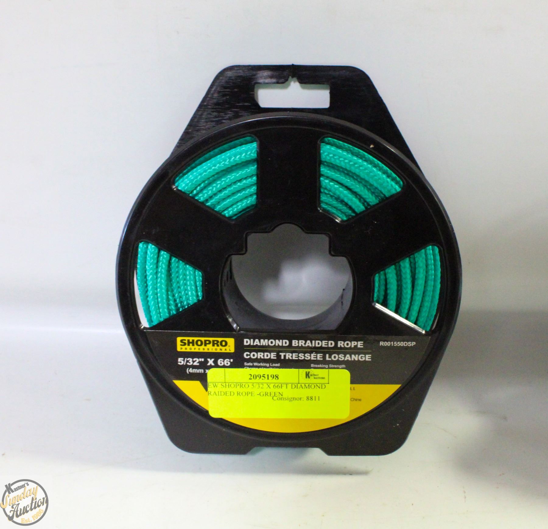 NEW SHOPRO 5/32 X 66FT DIAMOND BRAIDED ROPE -GREEN