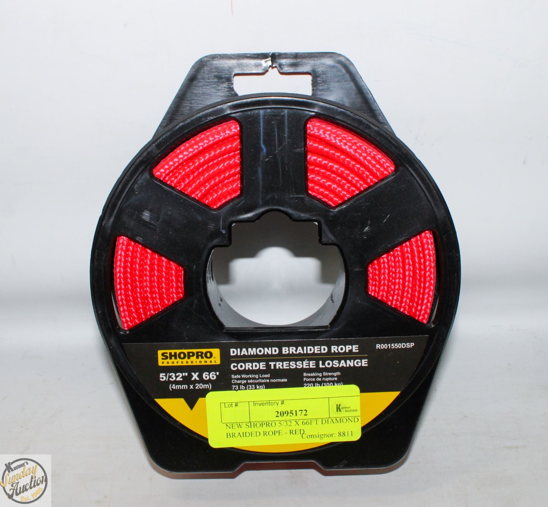 NEW SHOPRO 5/32 X 66FT DIAMOND BRAIDED ROPE - RED