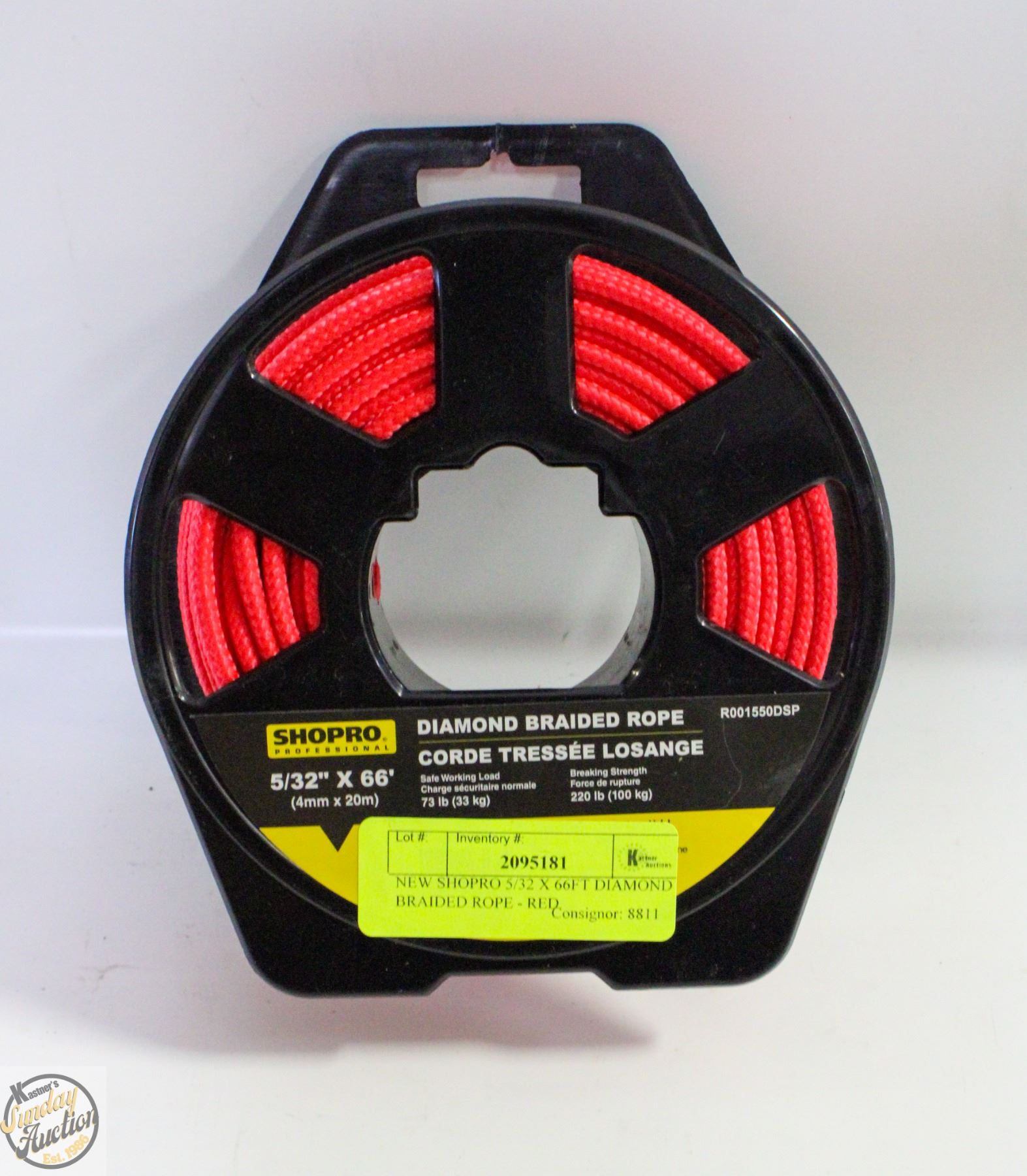 NEW SHOPRO 5/32 X 66FT DIAMOND BRAIDED ROPE - RED