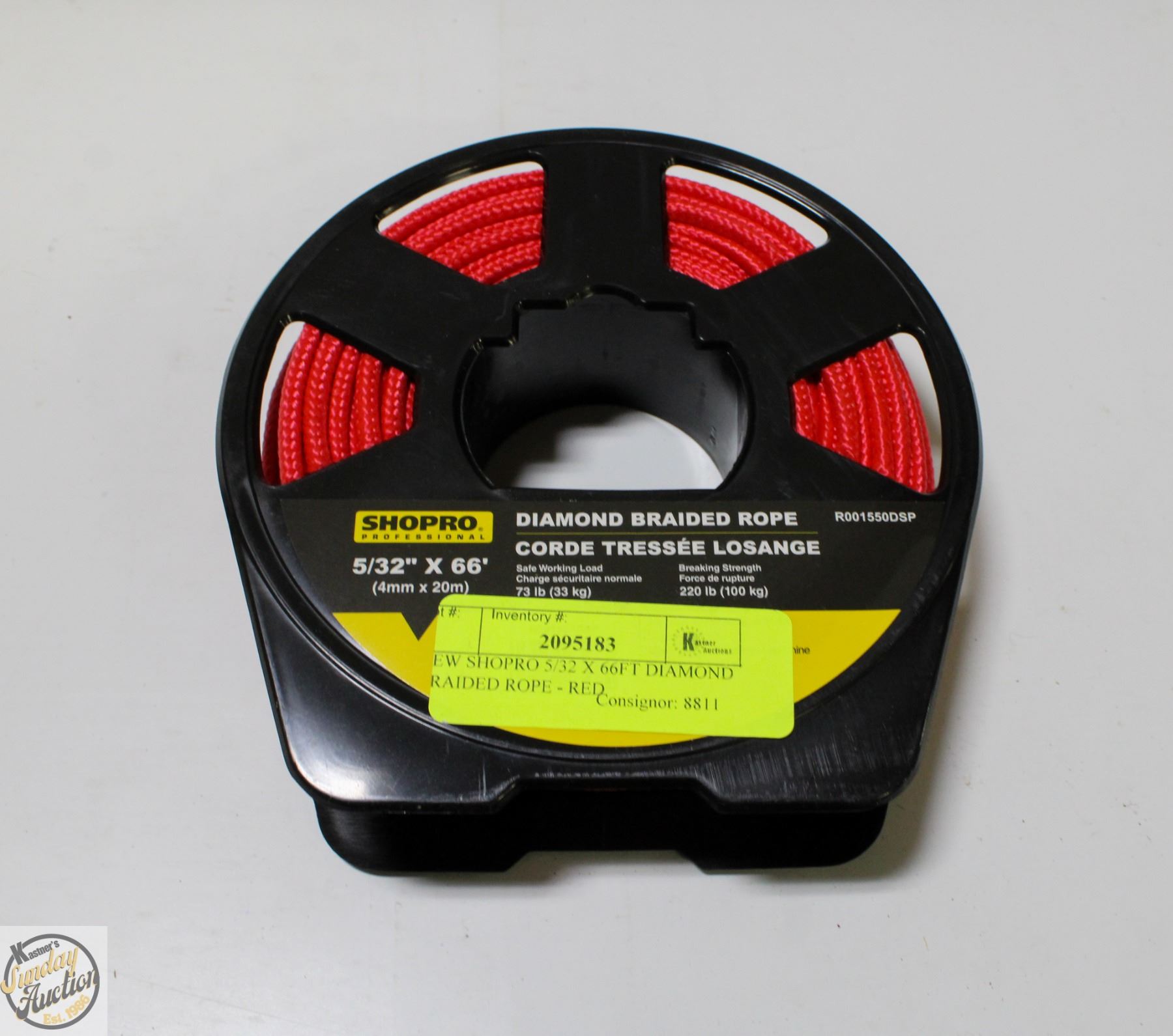 NEW SHOPRO 5/32 X 66FT DIAMOND BRAIDED ROPE - RED