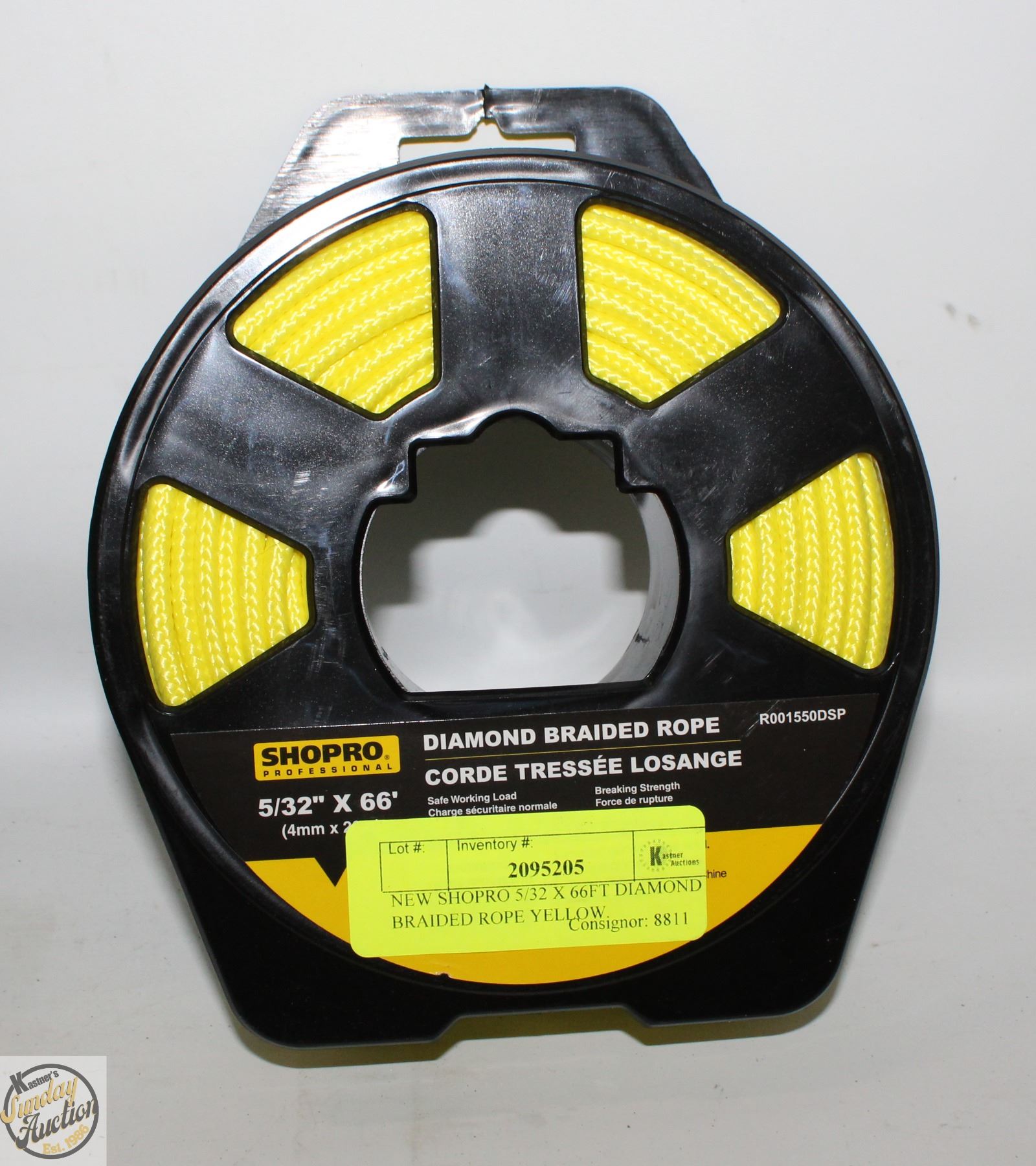 NEW SHOPRO 5/32 X 66FT DIAMOND BRAIDED ROPE YELLOW