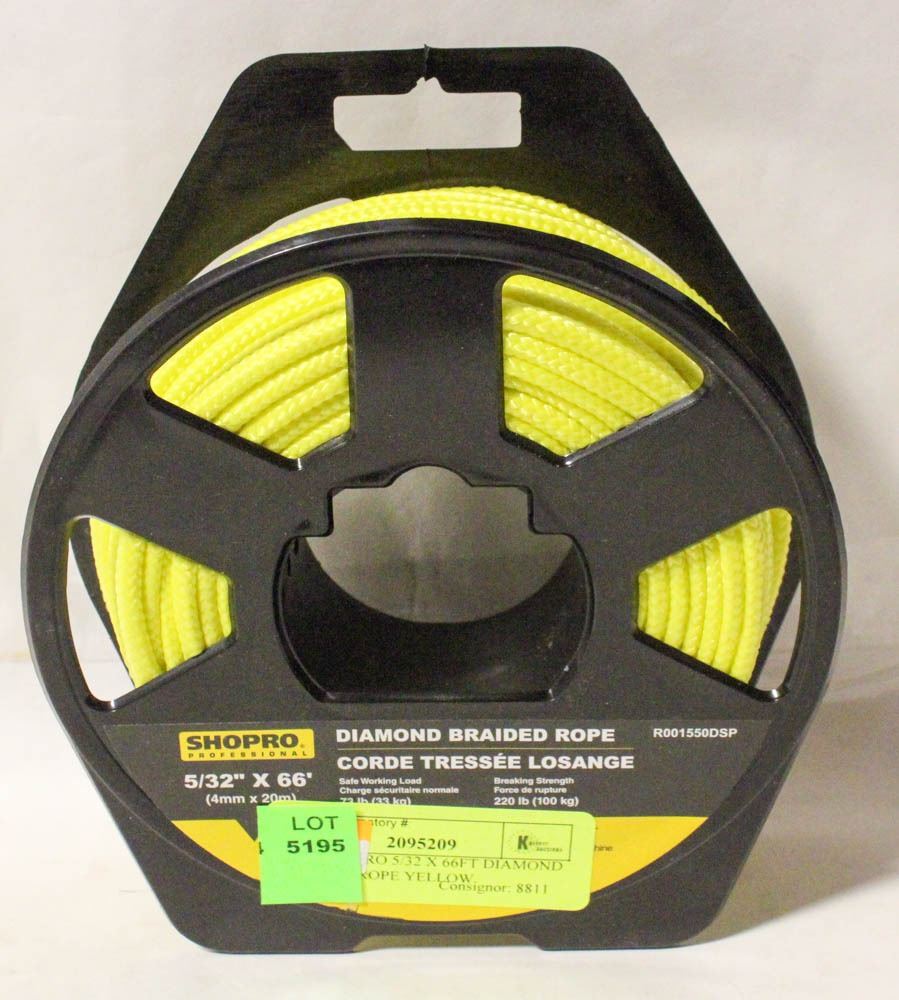 NEW SHOPRO 5/32 X 66FT DIAMOND BRAIDED ROPE YELLOW