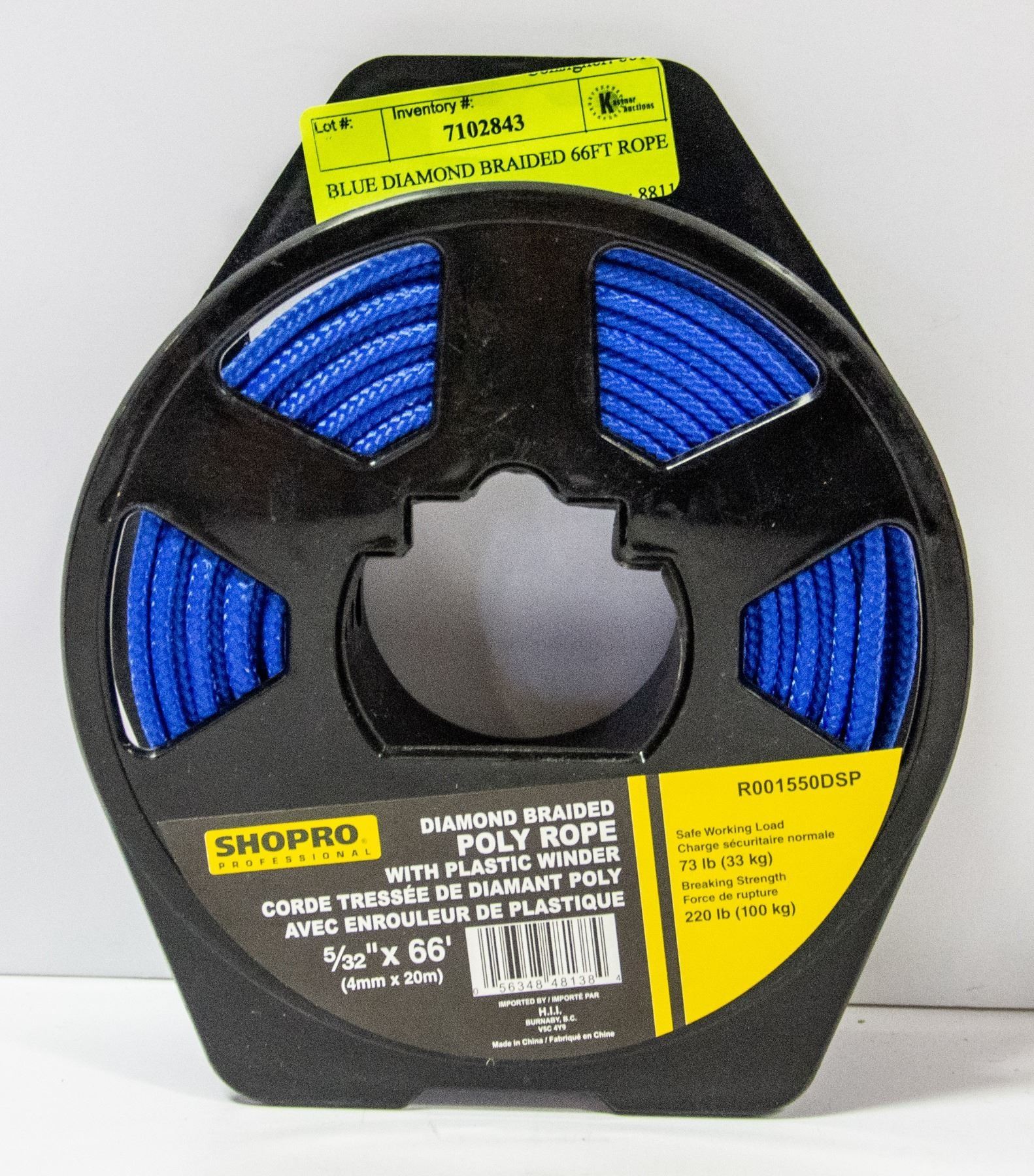 NEW SHOPRO DIAMOND BRAIDED BLUE 66FT ROPE