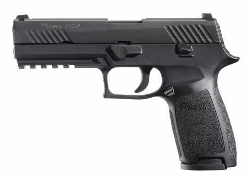 Mfr Items:Sig Sauer Category:PISTOLS Mfr Scan:SIGH Model:P320 Series:Full Size Action:Double Caliber:9mm Barrel Length:4.7" Capacity:17+1 Safety:Internal Safety System Grips:Integral Sights:Contrast Weight:29.4 oz Frame Finish:Black Frame Material:Polymer Slide Description:Black