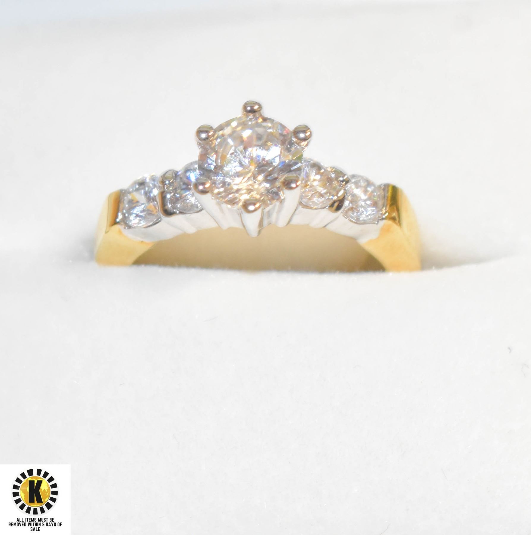 NEW SILVER & GOLD TONE CUBIZ ZIRCONIA RING SZ 6.5