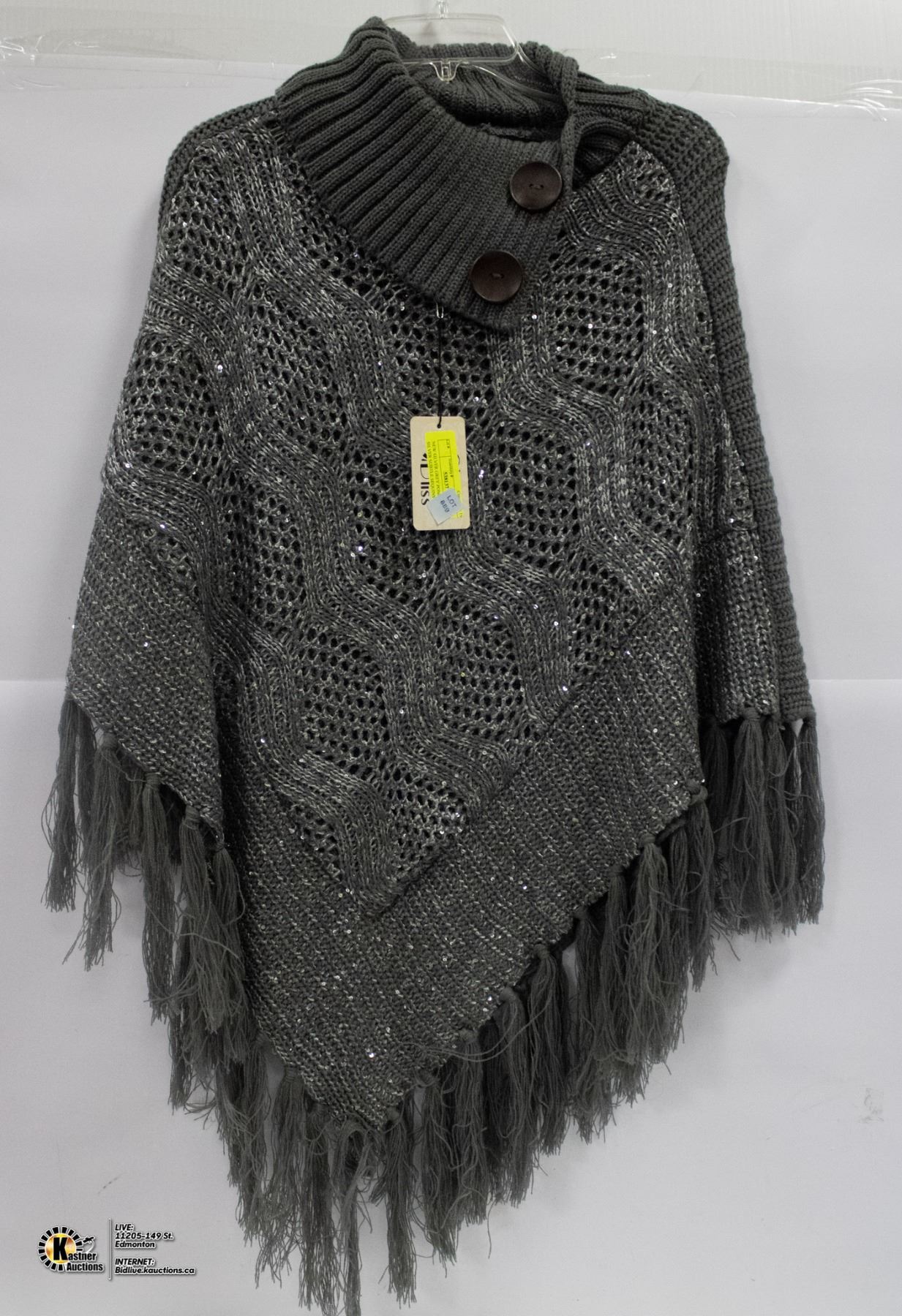 NEW SILVER GREY PONCHO WITH SILVER SUBTLE SEQUINS