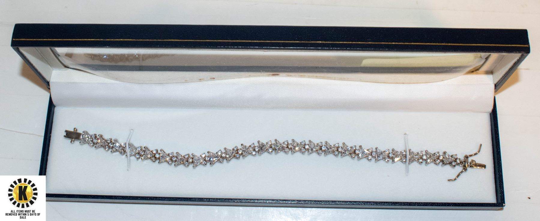 NEW SILVER PLATED BRACELET WITH CLEAR STONES